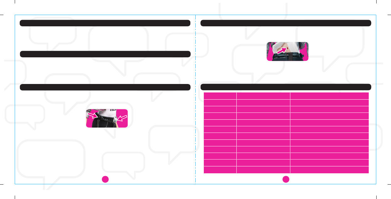 • Do not recharge the doll if it feels hot. Allow it to cool before recharging.