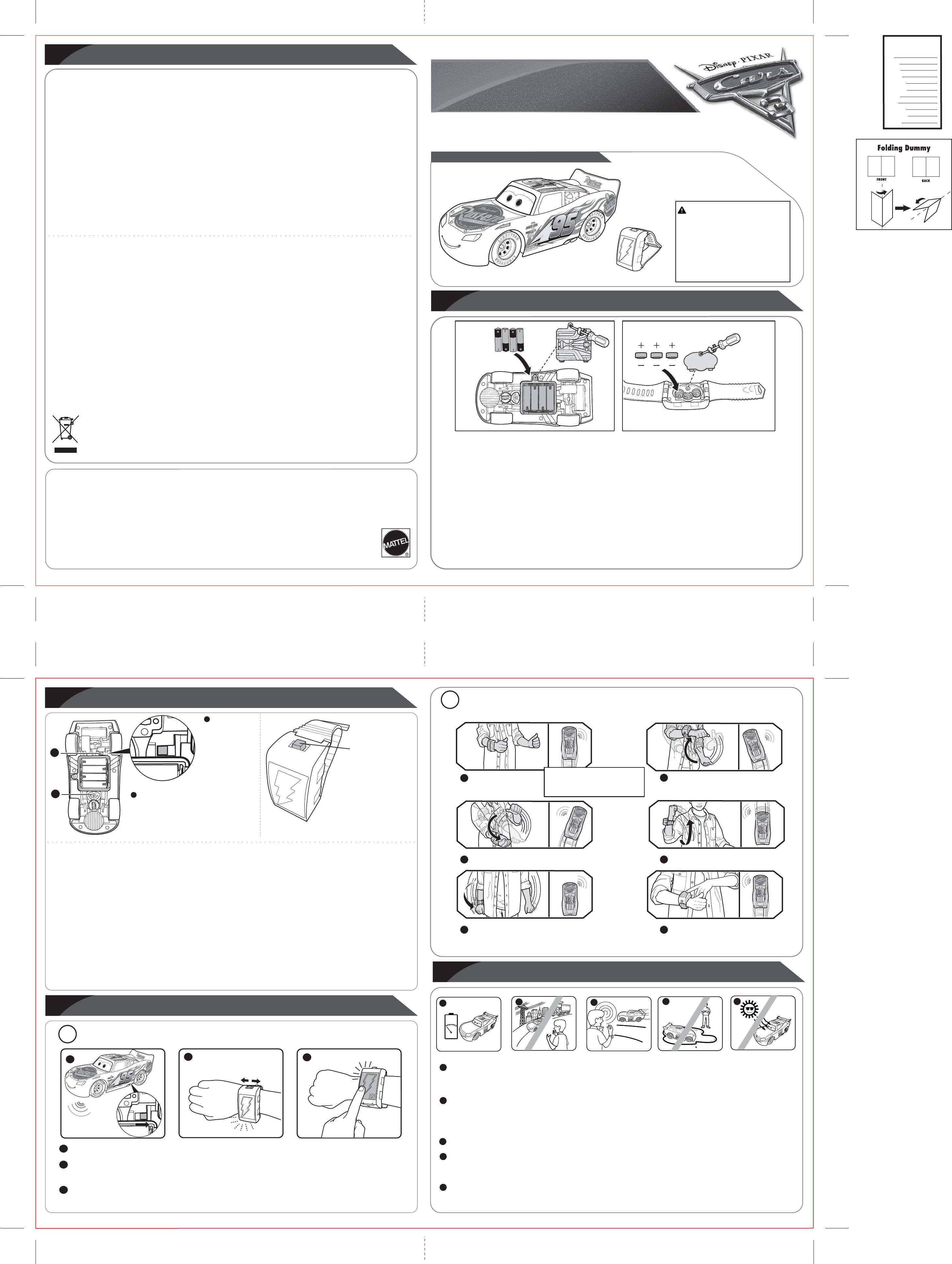 Mattel Asia Pacific Sourcing FCX96-17AST Disney Pixar Cars 3 Smart Steer Lightning McQueen (FCX96, FPC39), Disney Pixar Cars 3 Smart Steer Lightning McQueen (Sound Only) (FWM00) User Manual 17F FCX96 CARS MCQUEEN W BAND CONTROLLER IS 4LB