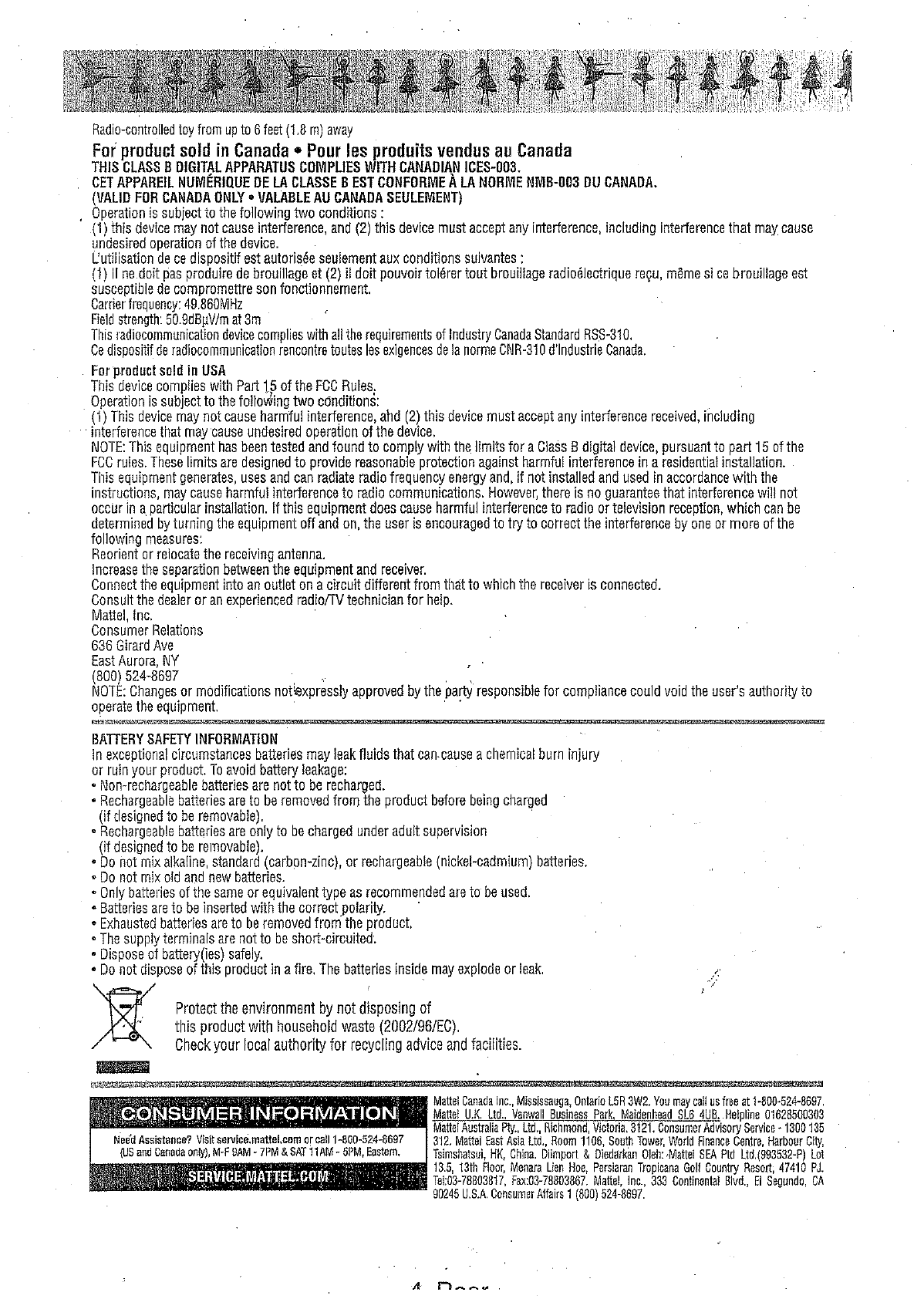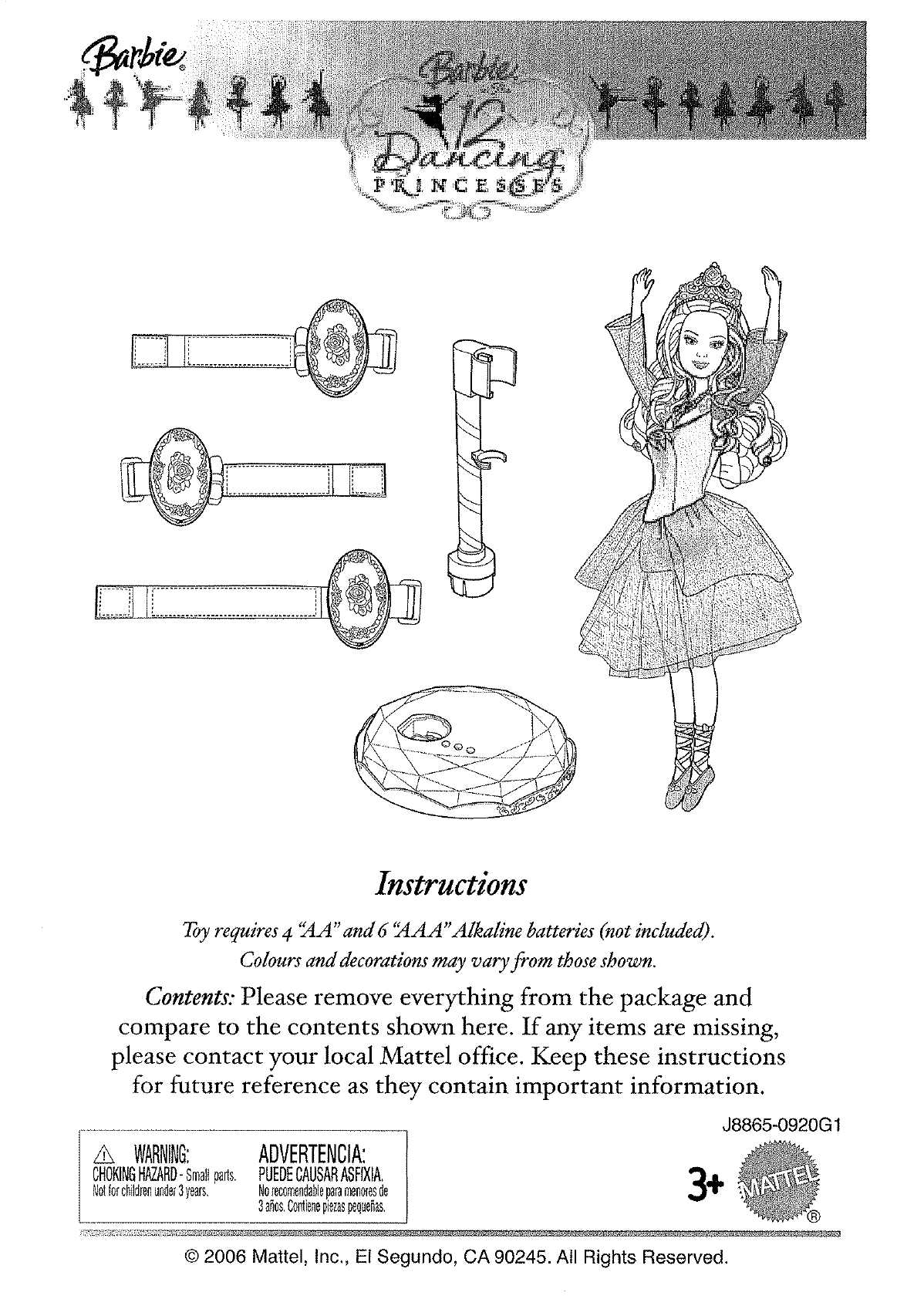 Mattel Asia Pacific Sourcing J8865-06A4R RC Dancing Toy Doll User Manual