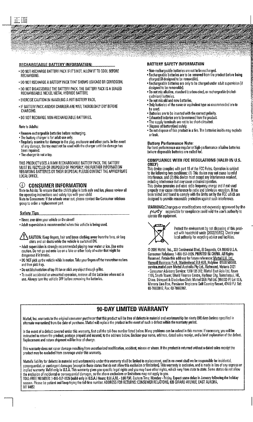 Mattel Asia Pacific Sourcing K6319-06A4T RC Hovercraft User Manual