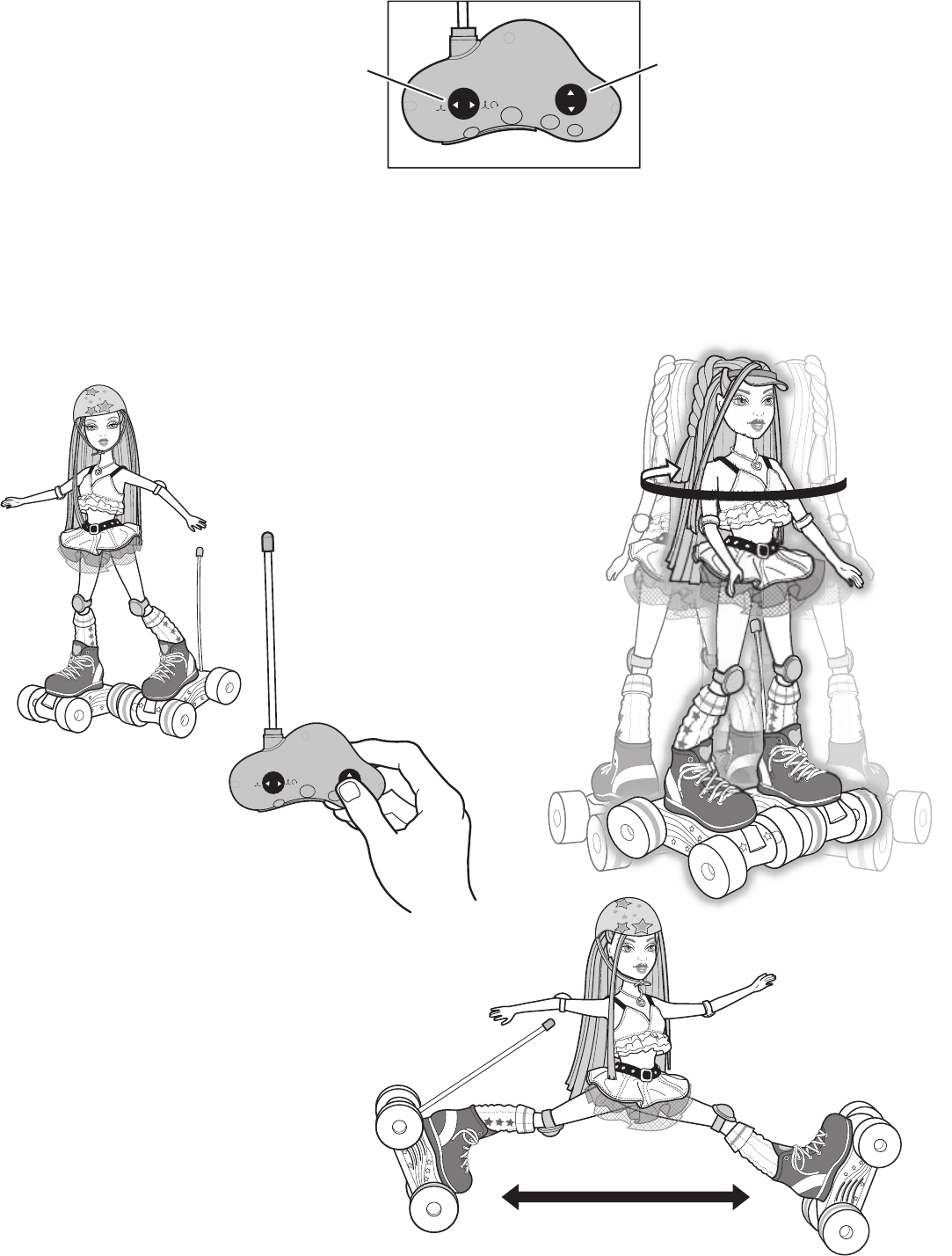 τηλεχειριστήριο απαιτούνται 2 μπαταρίες ΑΑ (δεν περιλαμβάνονται). Για τα πατίνια της κούκλας