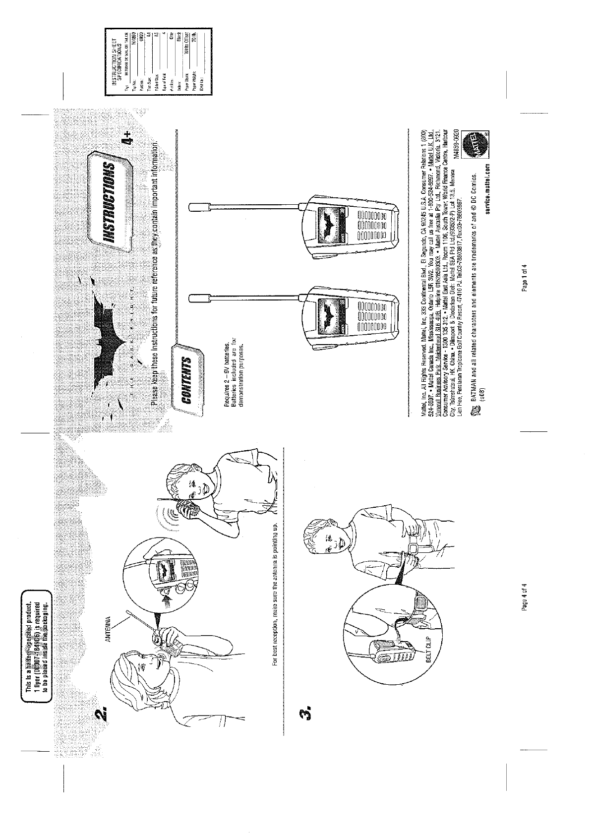 Mattel Asia Pacific Sourcing M4859-07A4T BATMAN WALKIE TALKIE AND SPEED RACER WALKIE TALKIE User Manual USERS MANUAL