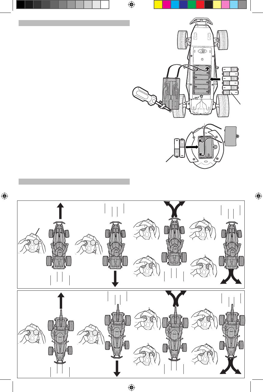 Requires 6 AA alkaline batteries for the vehicle and 2 AA