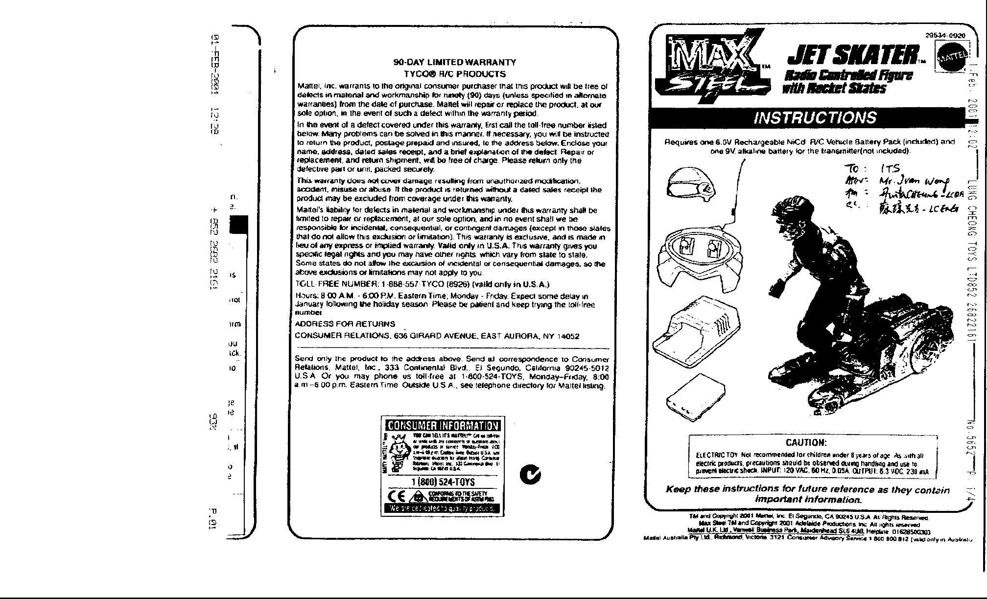 Mattel Toys A Division of Mattel 29534-00A2T 27 MHz radio controlled toy/skater User Manual