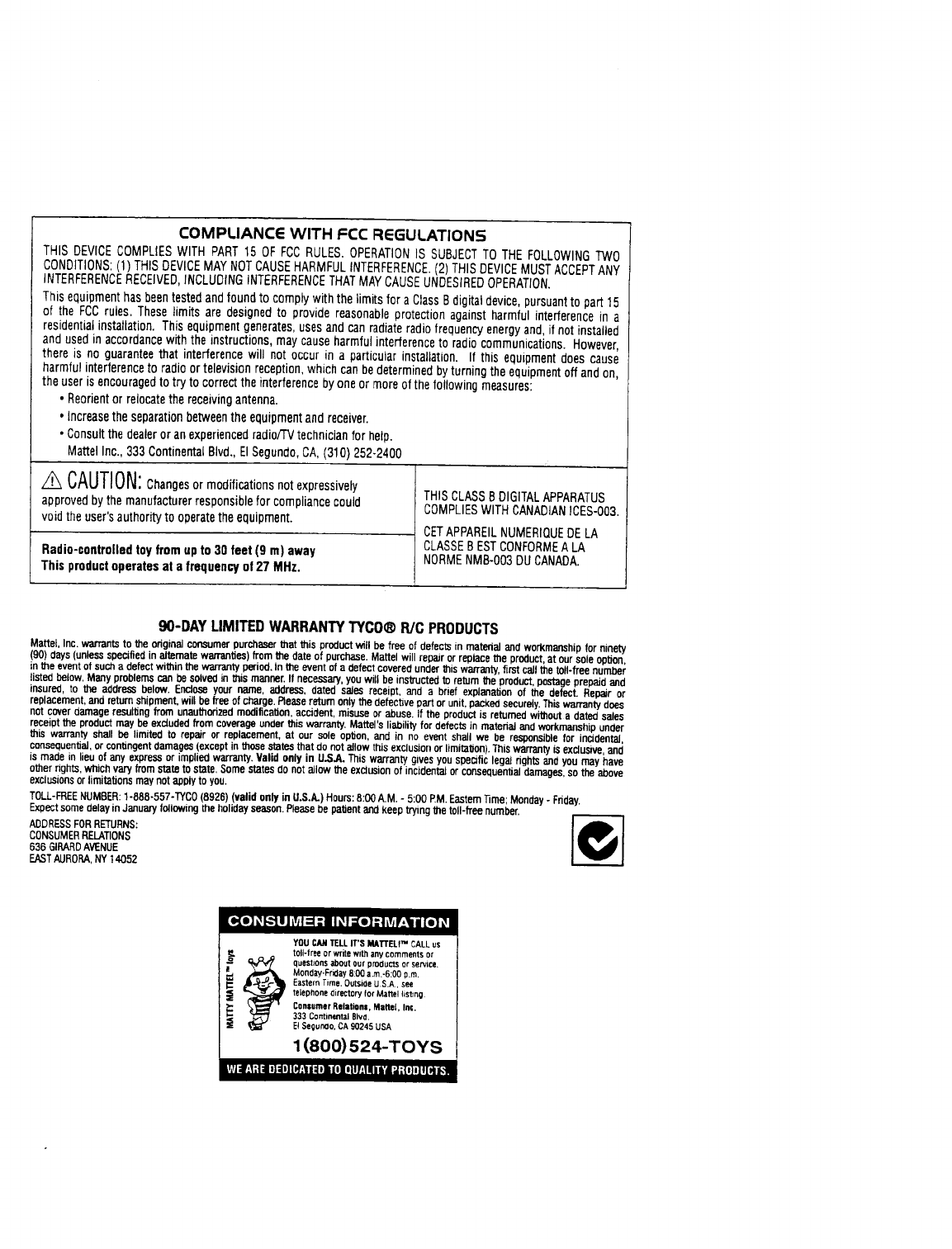 Mattel Toys A Division of Mattel Inc Remote Control Toy Transmitter page
