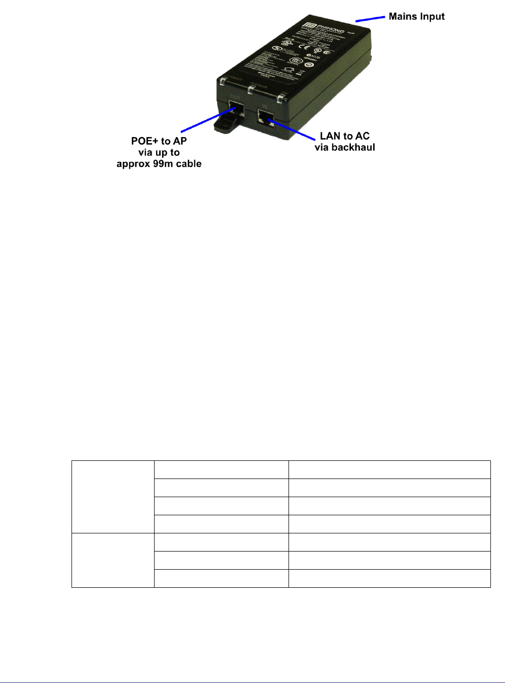 The POE+ inserter supplied by ip.access complies with LPS requirements in accordance