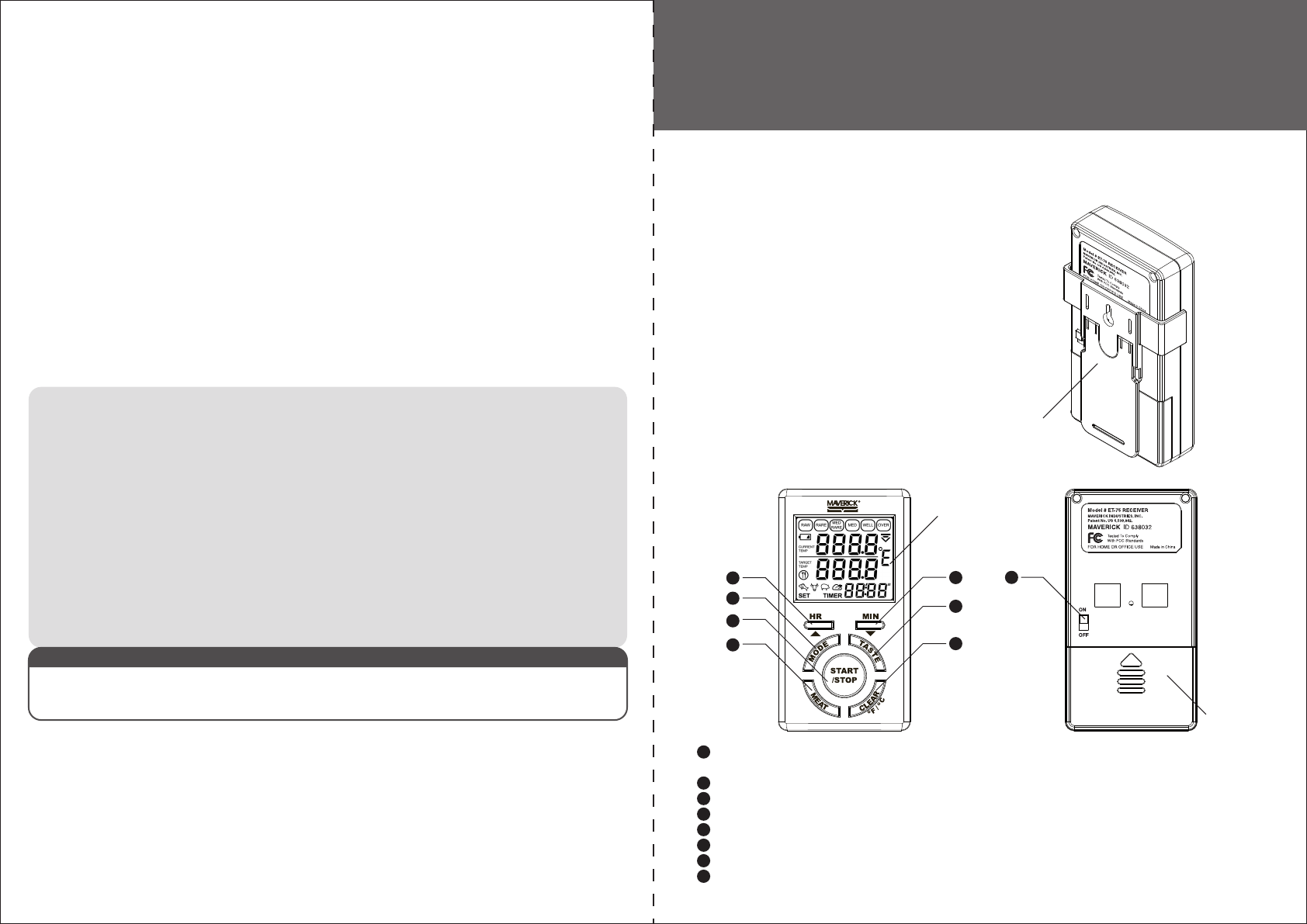 Maverick Industries, Inc. Remote Thermometer (433.9MHz Tx) 85 638 M01 001a