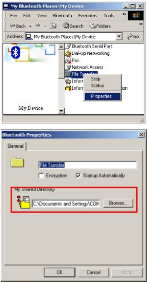 * On the server, in the Folders pane of "My Bluetooth Places", right-click "My Device"
