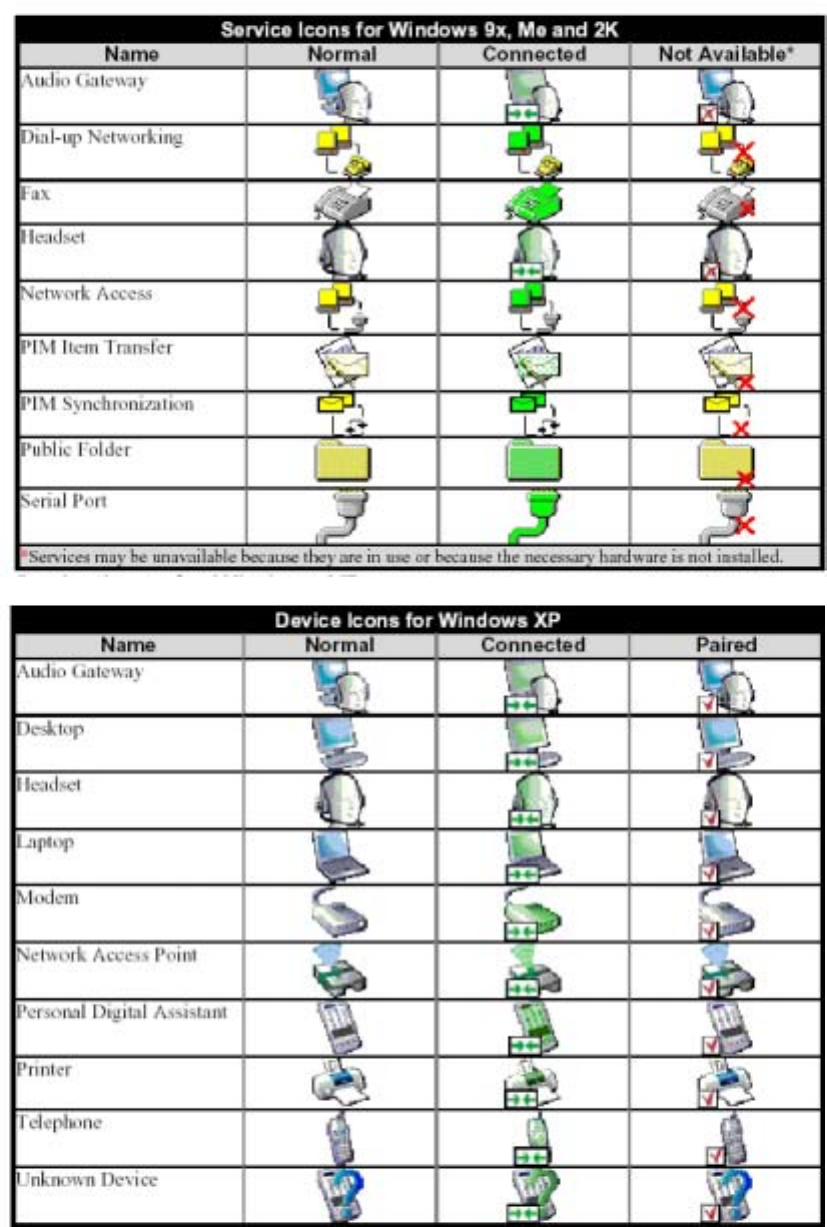 Bluetooth icons provide at-a-glance feedback about a device or service's status by changing