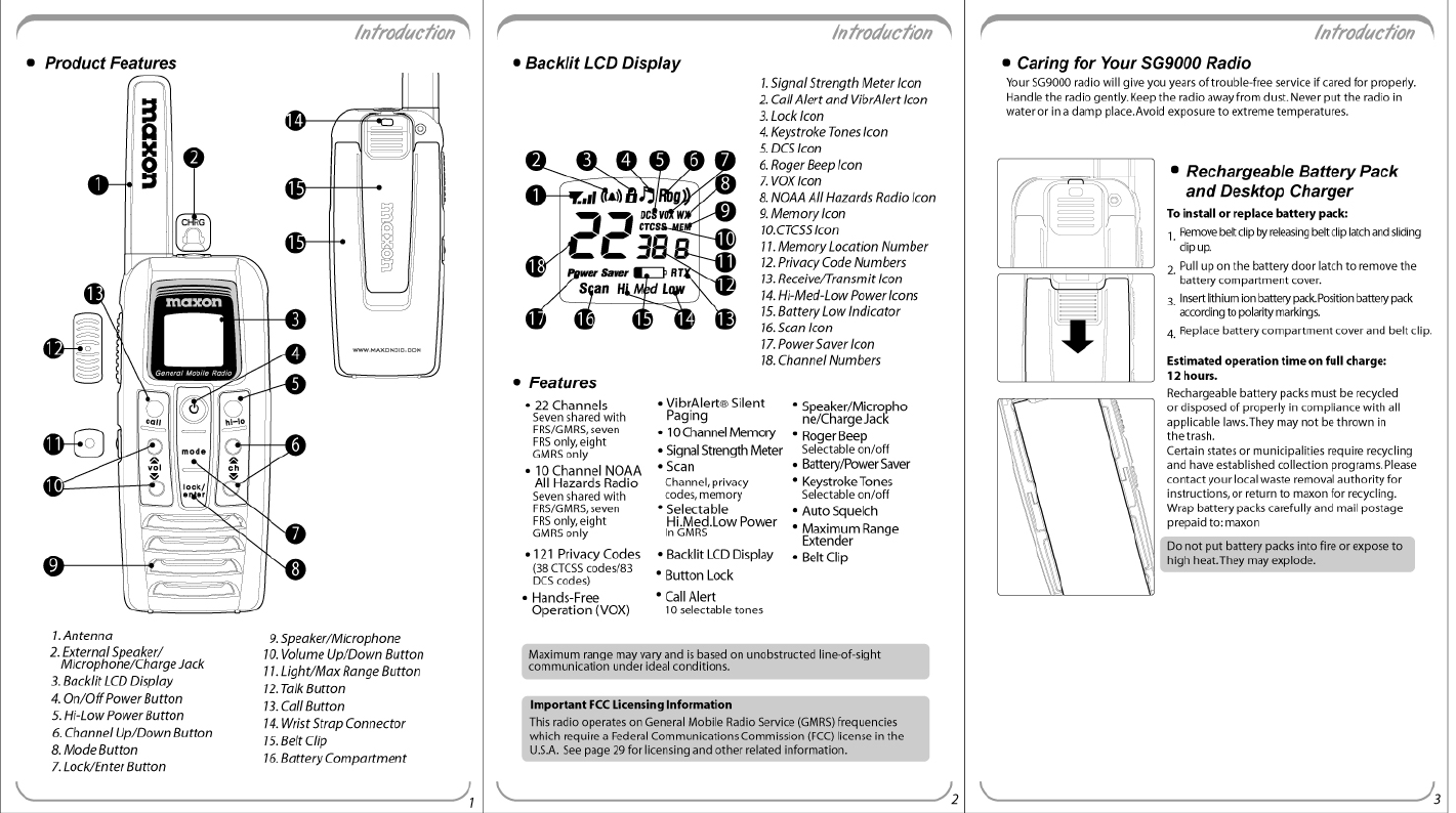 Maxon CIC SG9000 FRS/GMRS Transceiver User Manual I