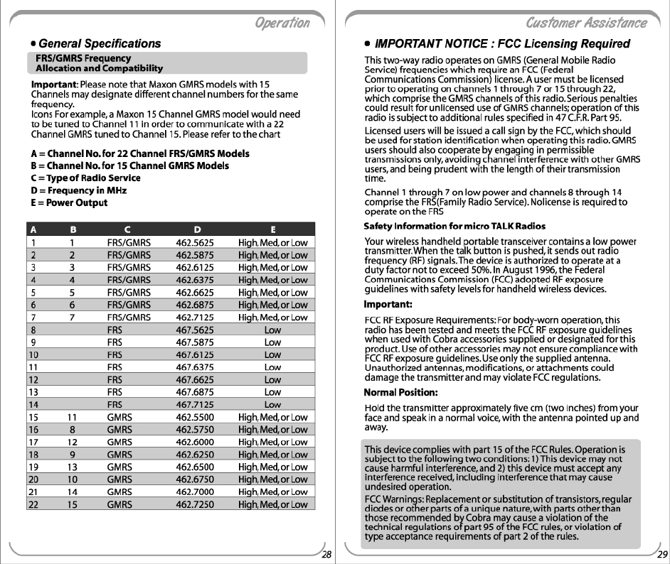 Maxon CIC Corp. FRS/GMRS Transceiver Users Manual II