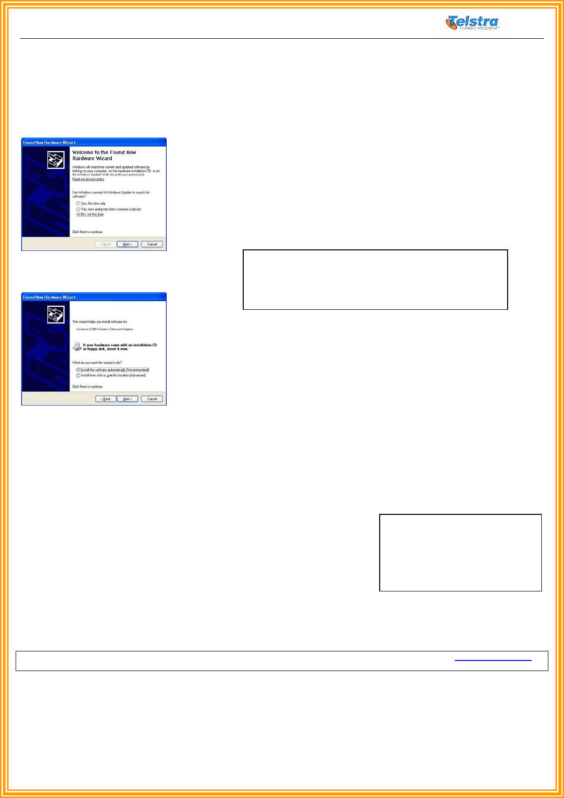 For Window 2000, when the Telstra Turbo Modem™ is connected to the PC, windows will automatically install the modem without starting