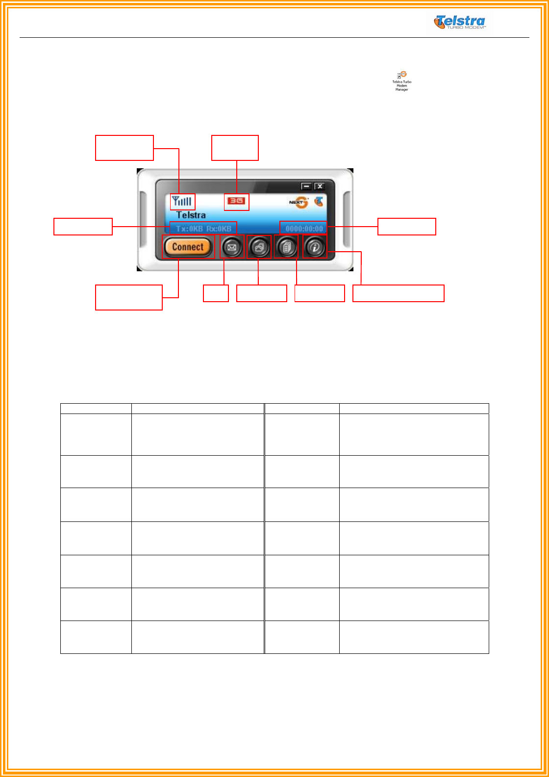During this installation a shortcut will have been placed on your desktop for the Telstra Turbo Modem™ Manager . To run the manager, plug your