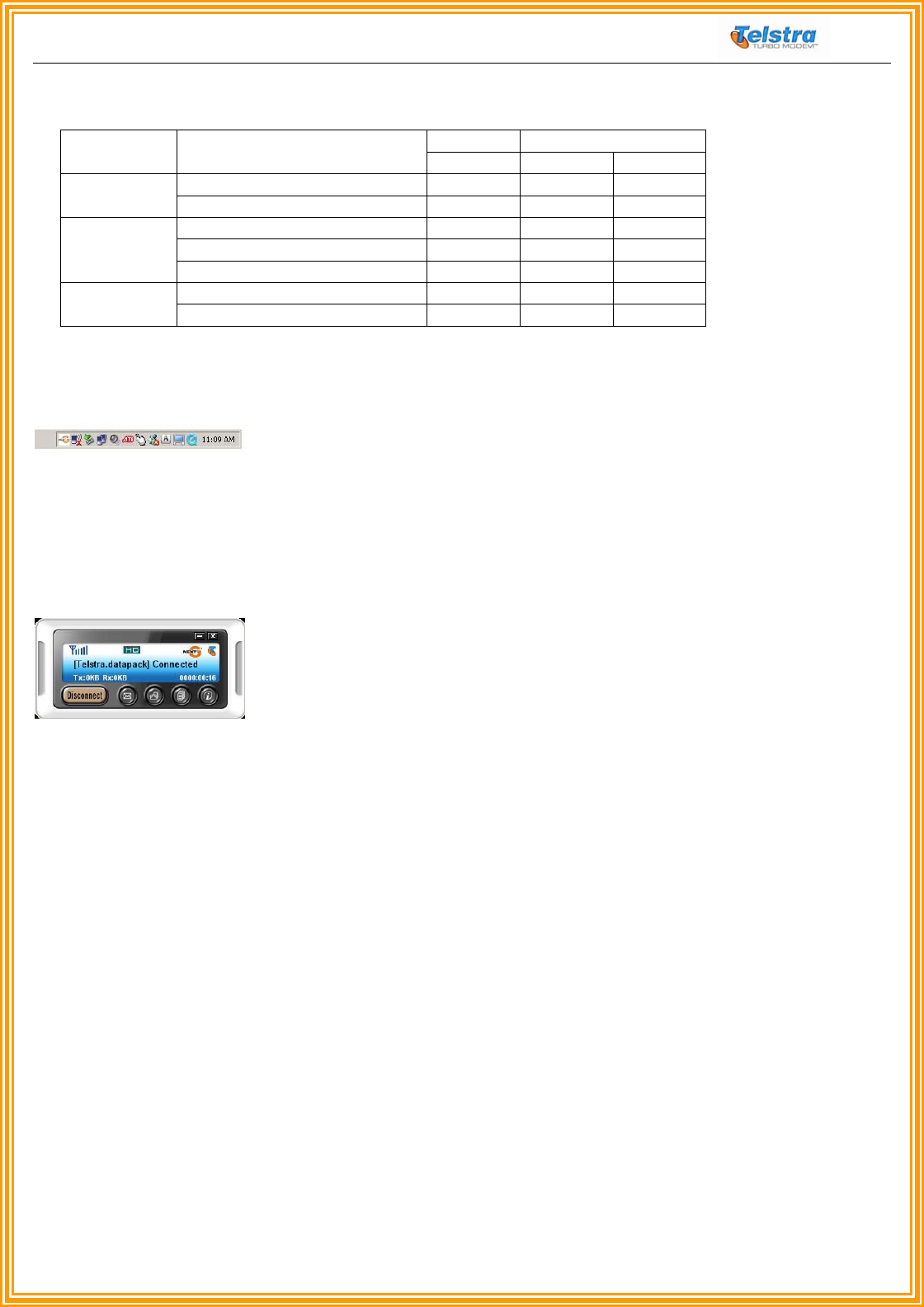 2.2 Telstra Turbo Modem™ LED operation…………………………………………………….. 7