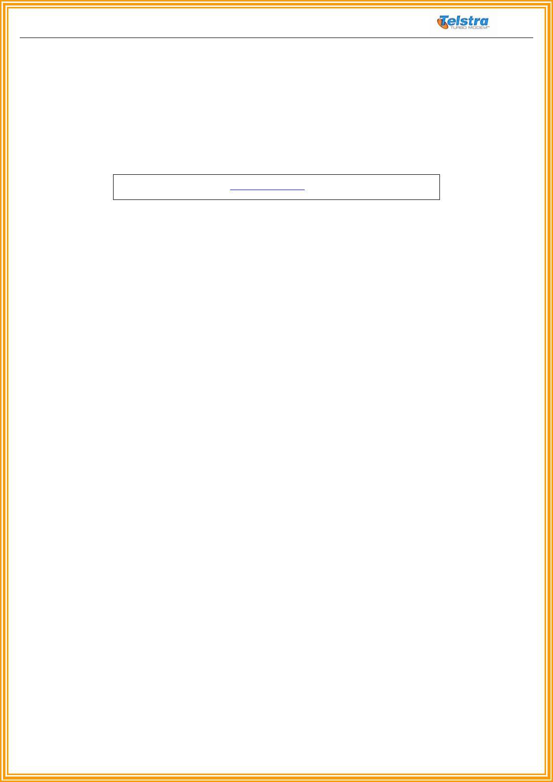 For further assistance with the Telstra Turbo Modem™ contact Telstra Customer Support by calling 1300 131 816 or visit Telstra’s web site at www.telstra.com/mobilebroadband.