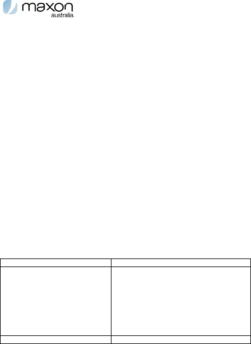 Change or modification without the express consent of Maxon Electronics Australia Pty. Ltd. voids