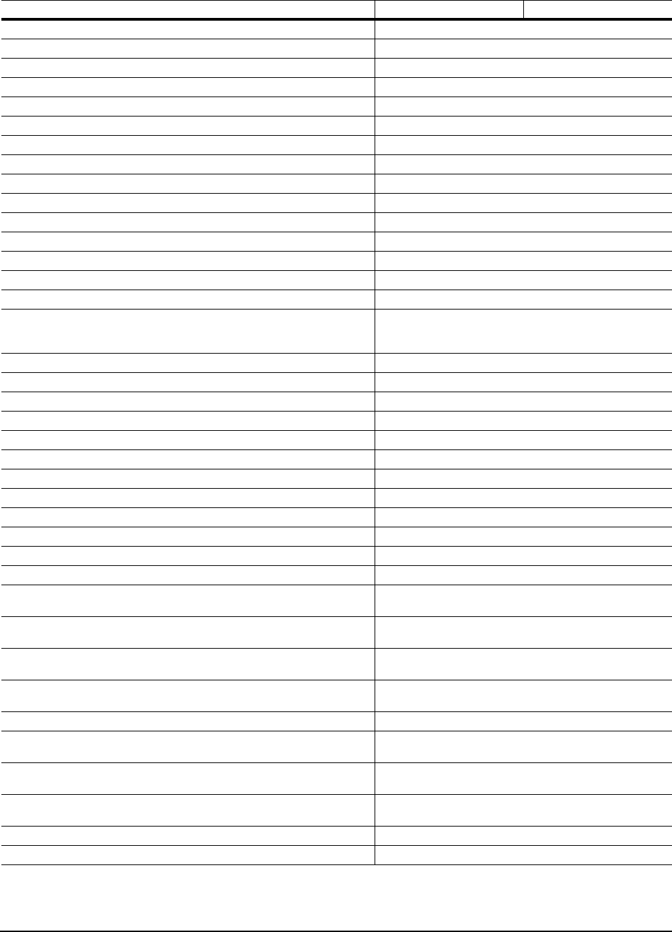 Specification summary table 3