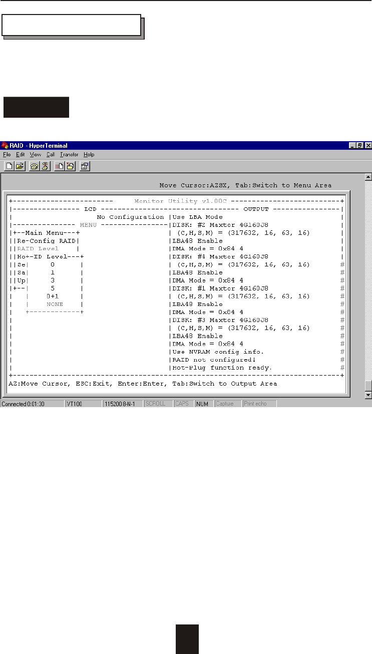 Move cursor ( ) to the desired RAID Level ( 0, 1, 3, 5, 0+1,