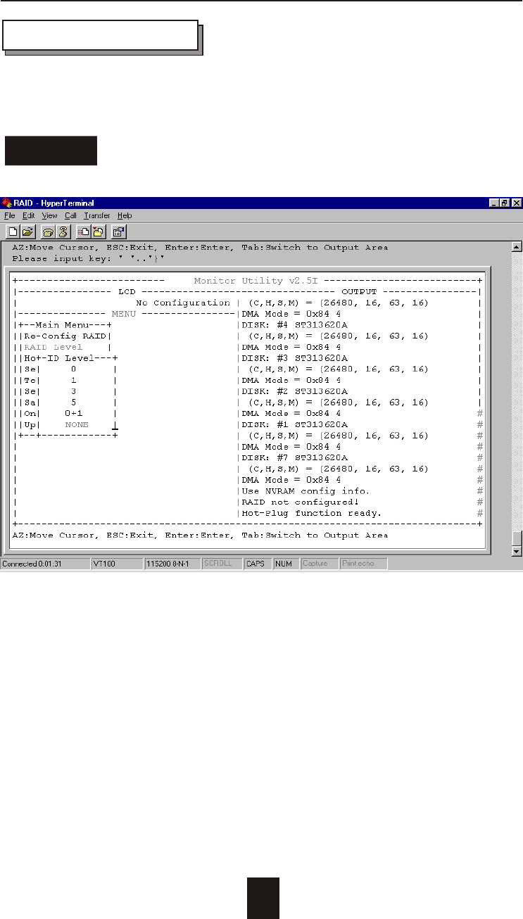 Move cursor ( ) to the desired RAID Level ( 5, 3, 1, 0, 0+1,