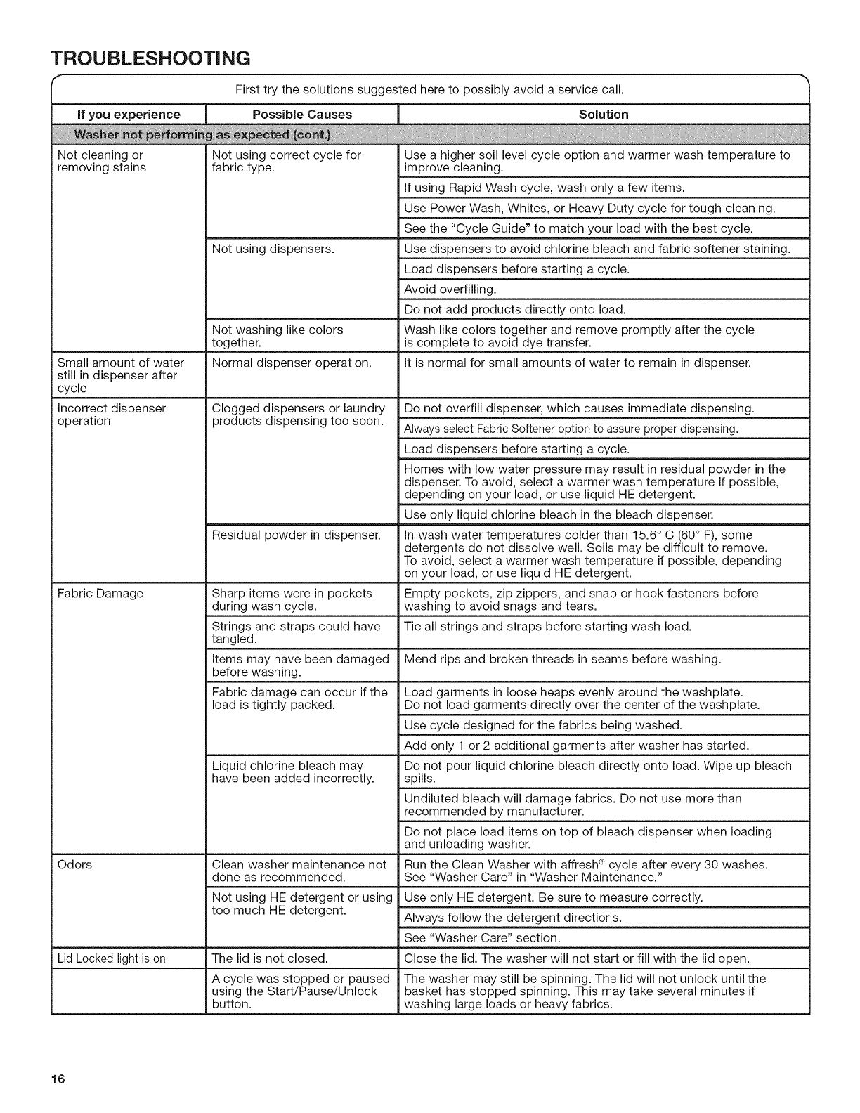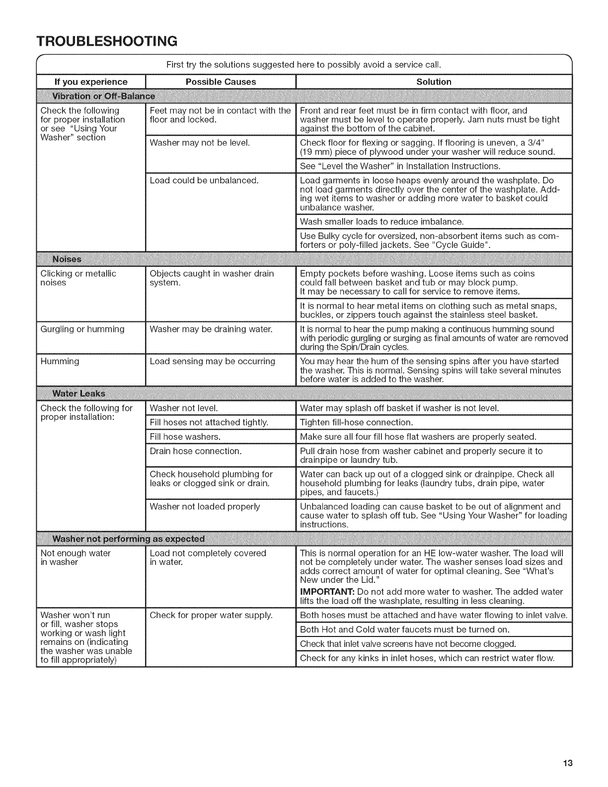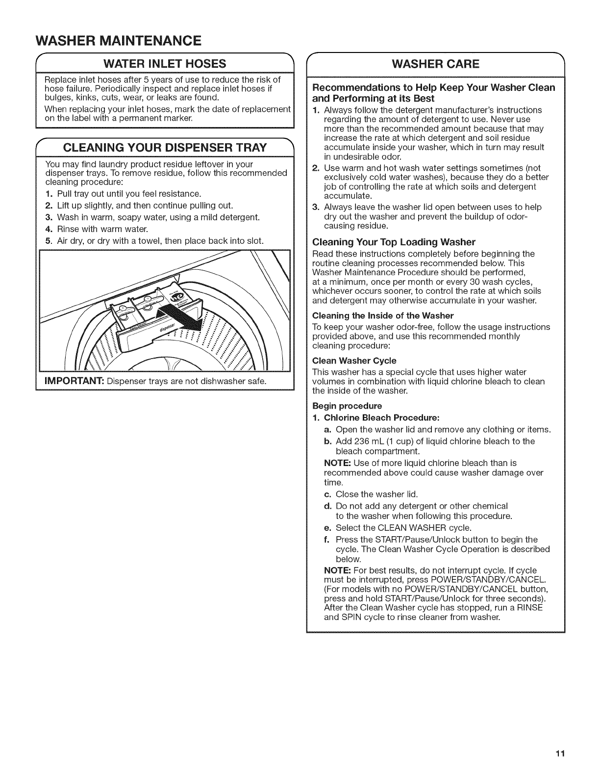 WASHER MAINTENANCE ....................................................11