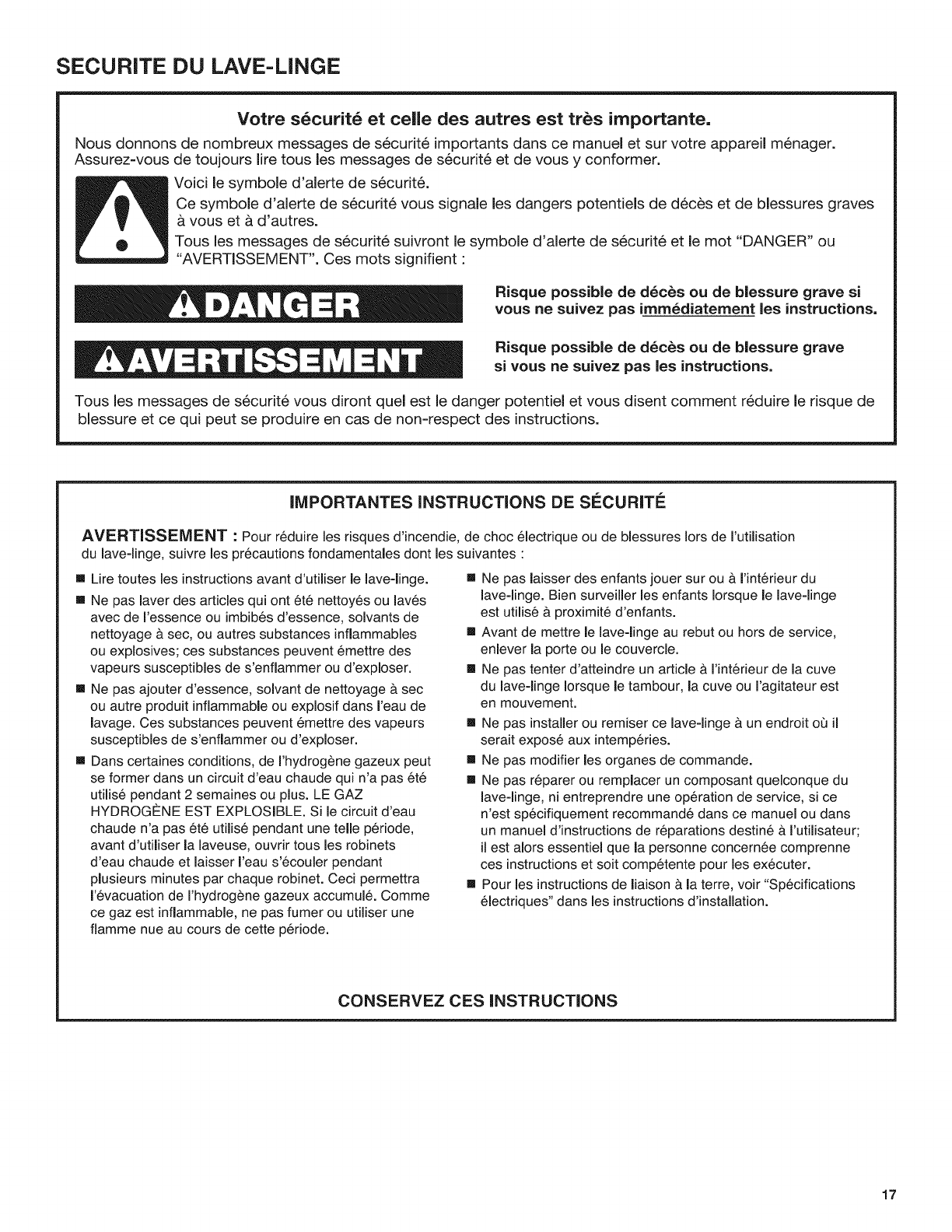 SECURITE DU LAVE-LINGE ............................................ 17