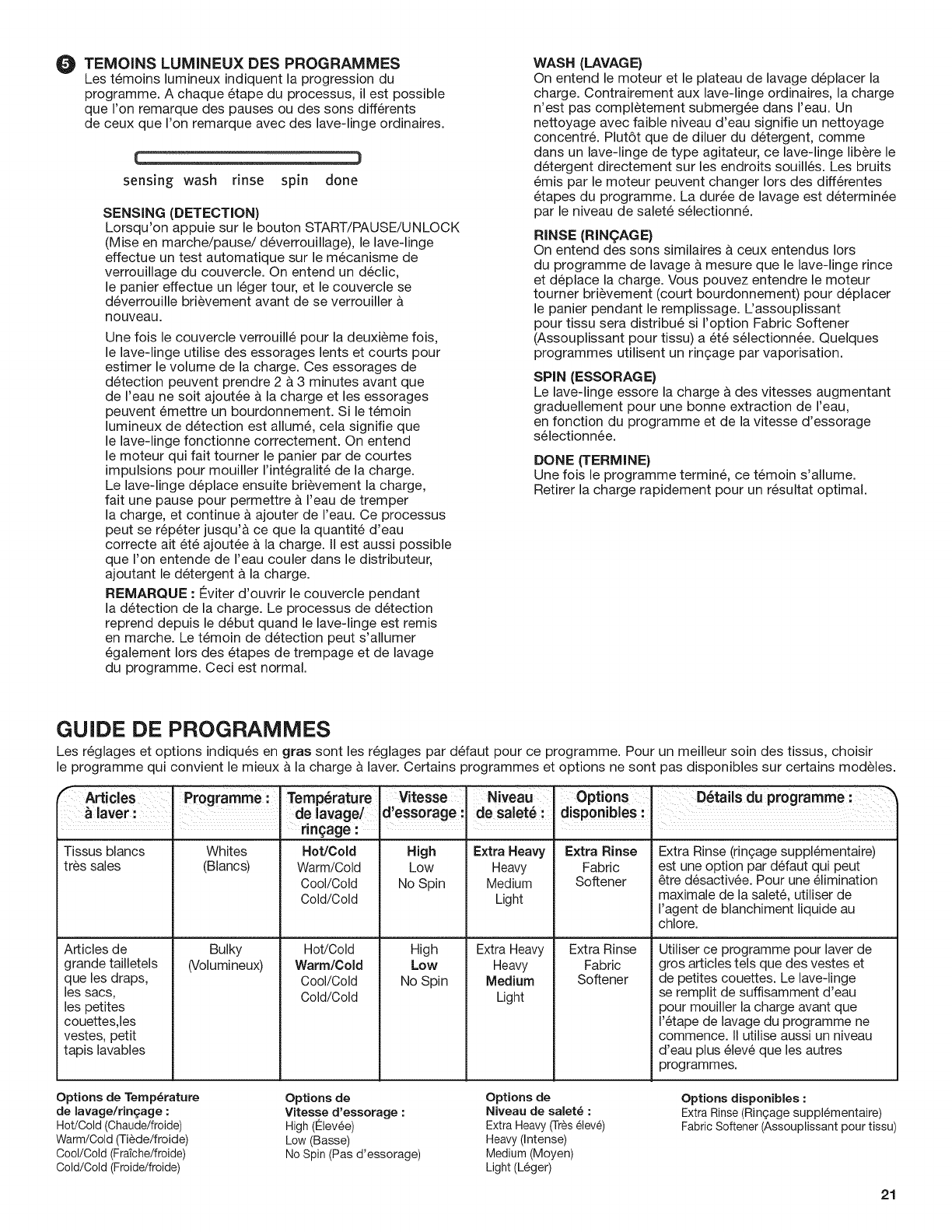 GUIDE DES PROGRAMMES ........................................... 21