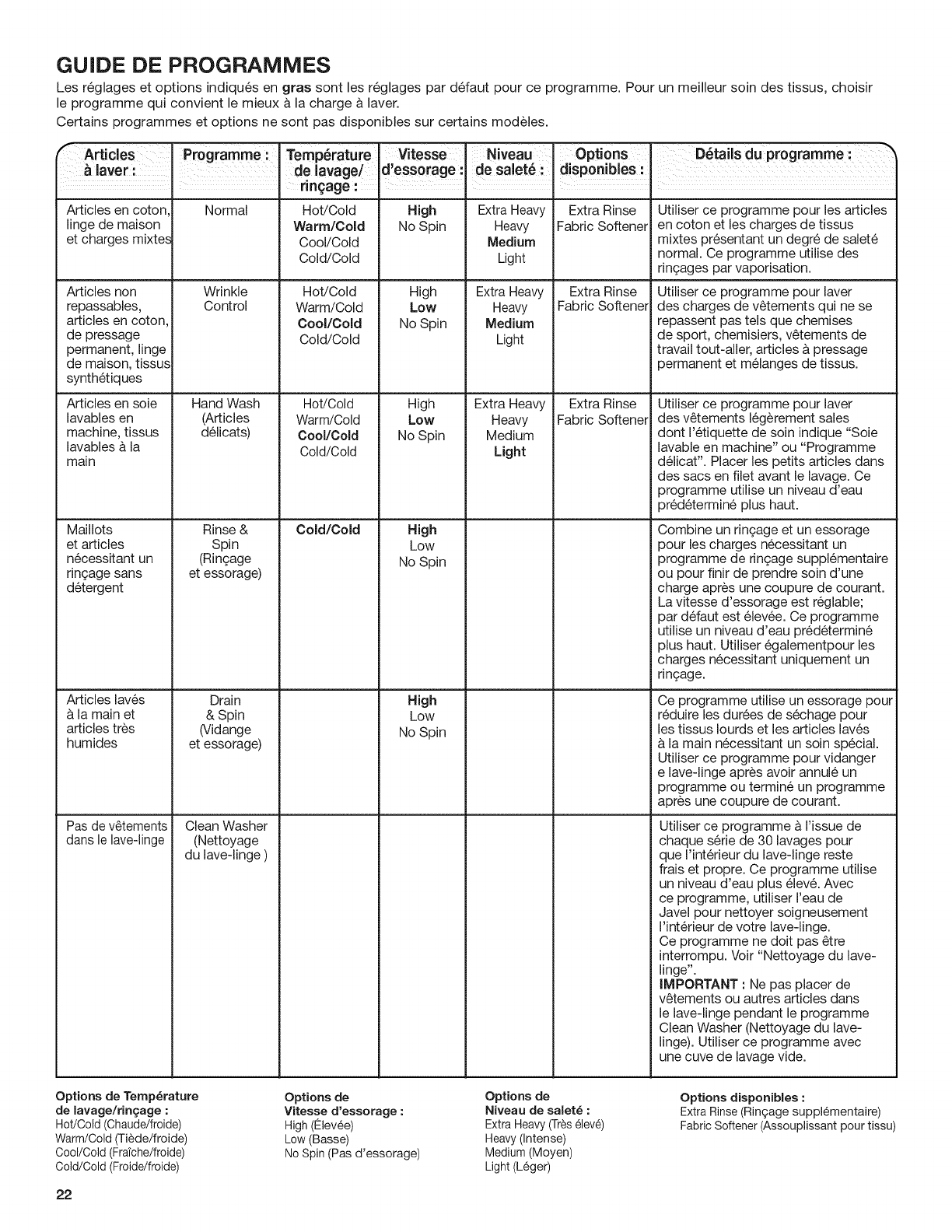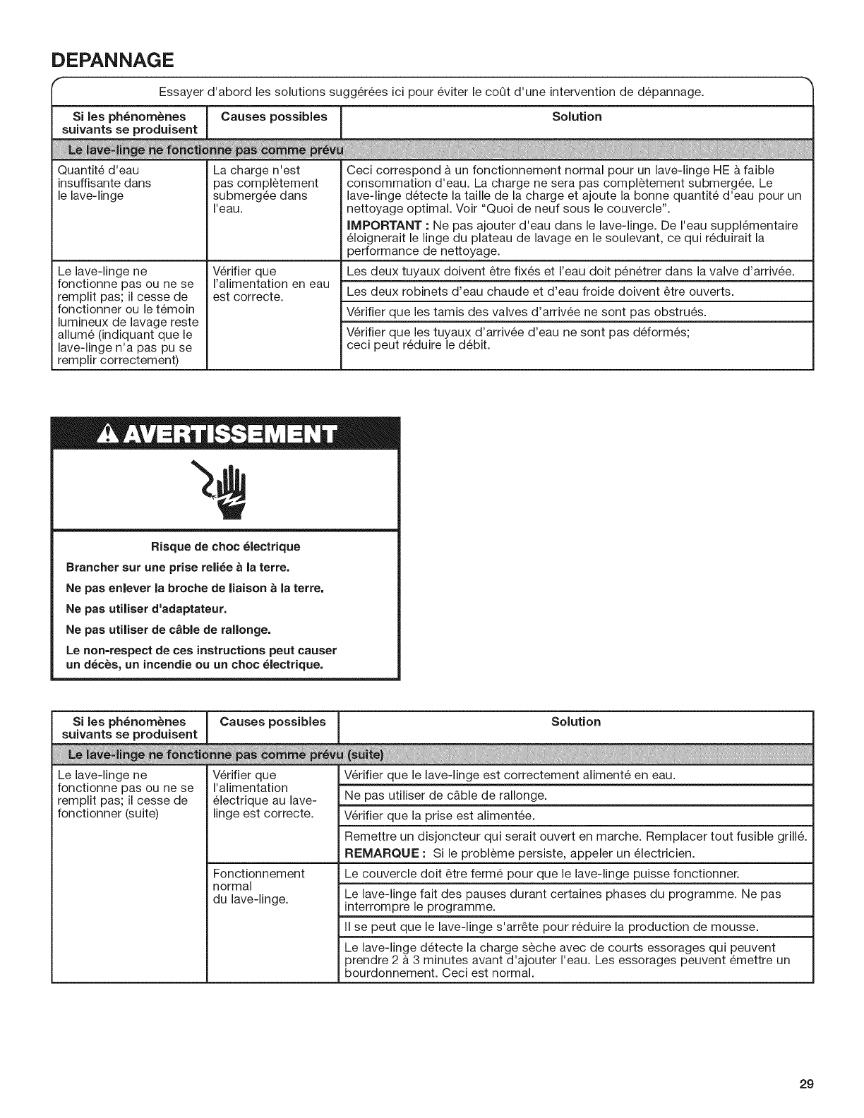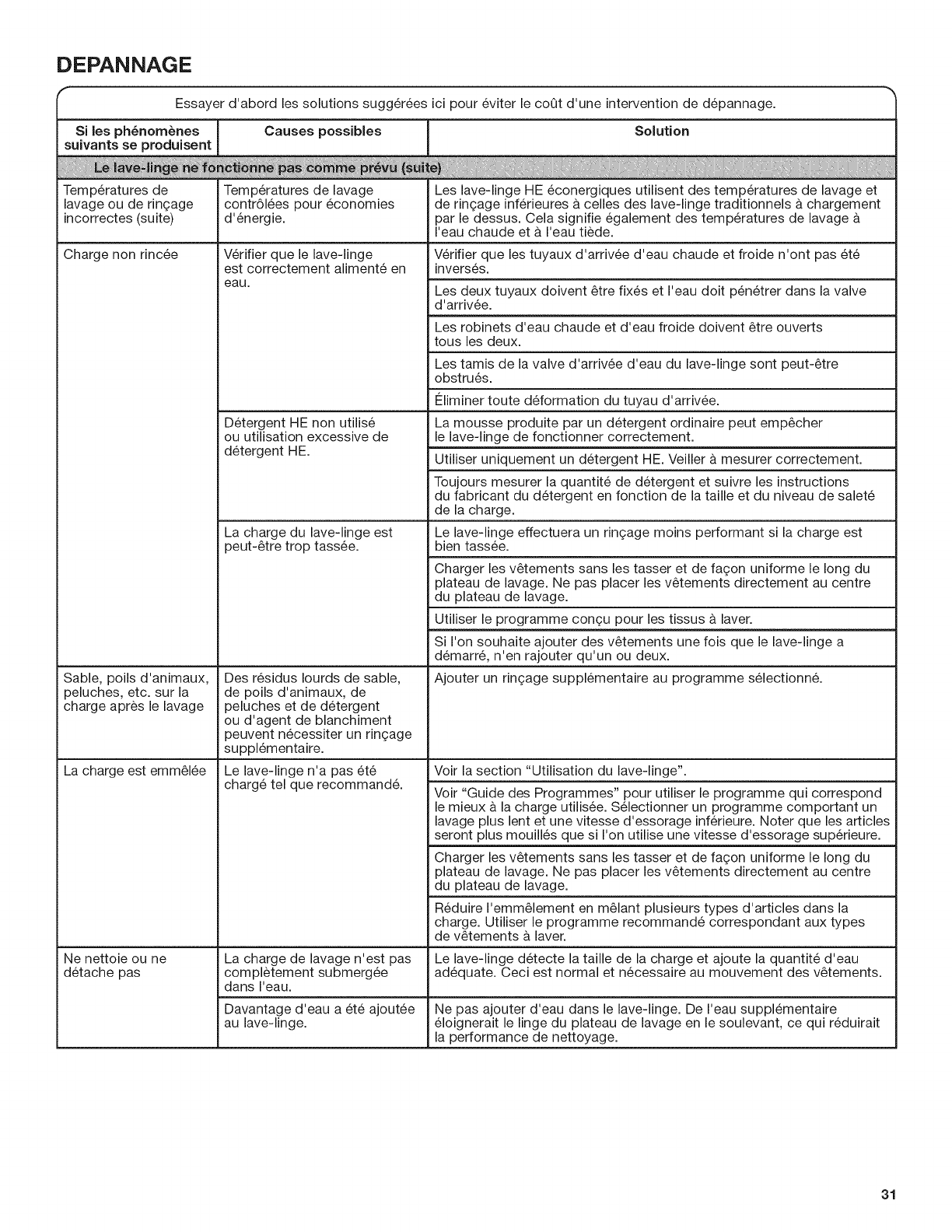 ENTRETIEN DU LAVE-LINGE ..............................................26