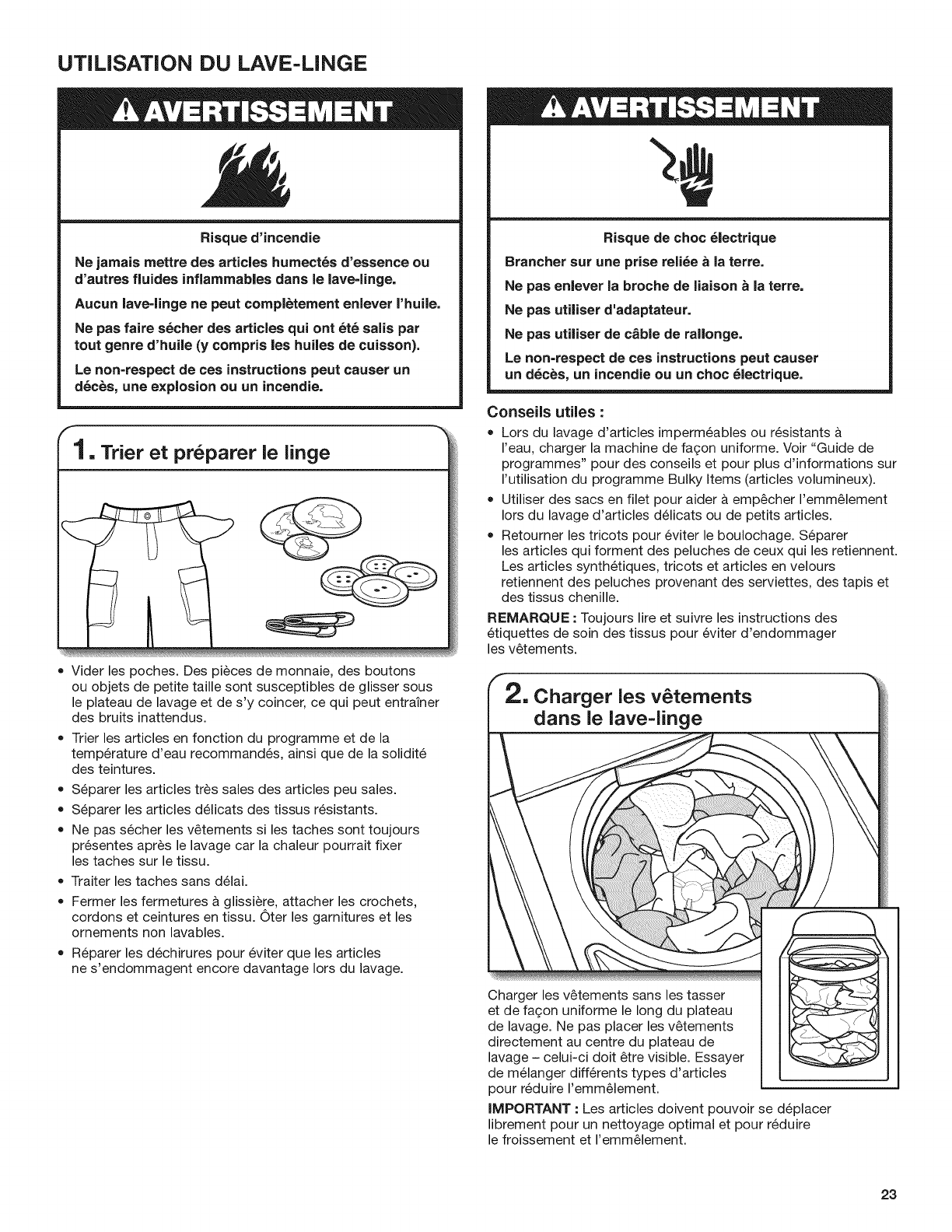 UTILISATION DU LAVE-LINGE ....................................... 23