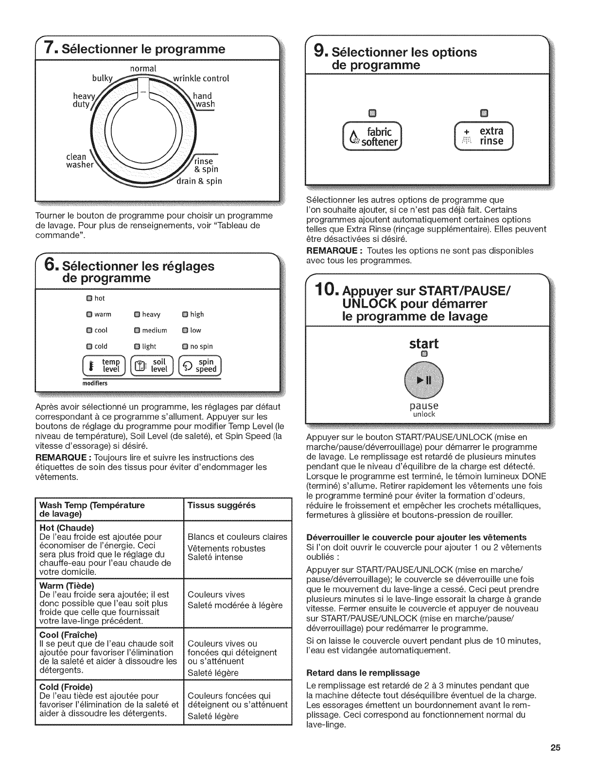 Mise en marche du lave-linge ...........................................24