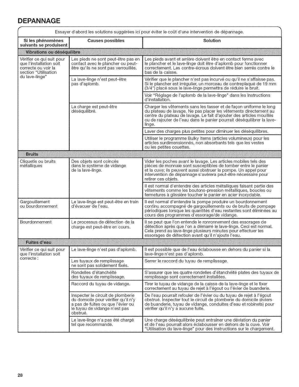 DEPANNAGE ............................................................................28