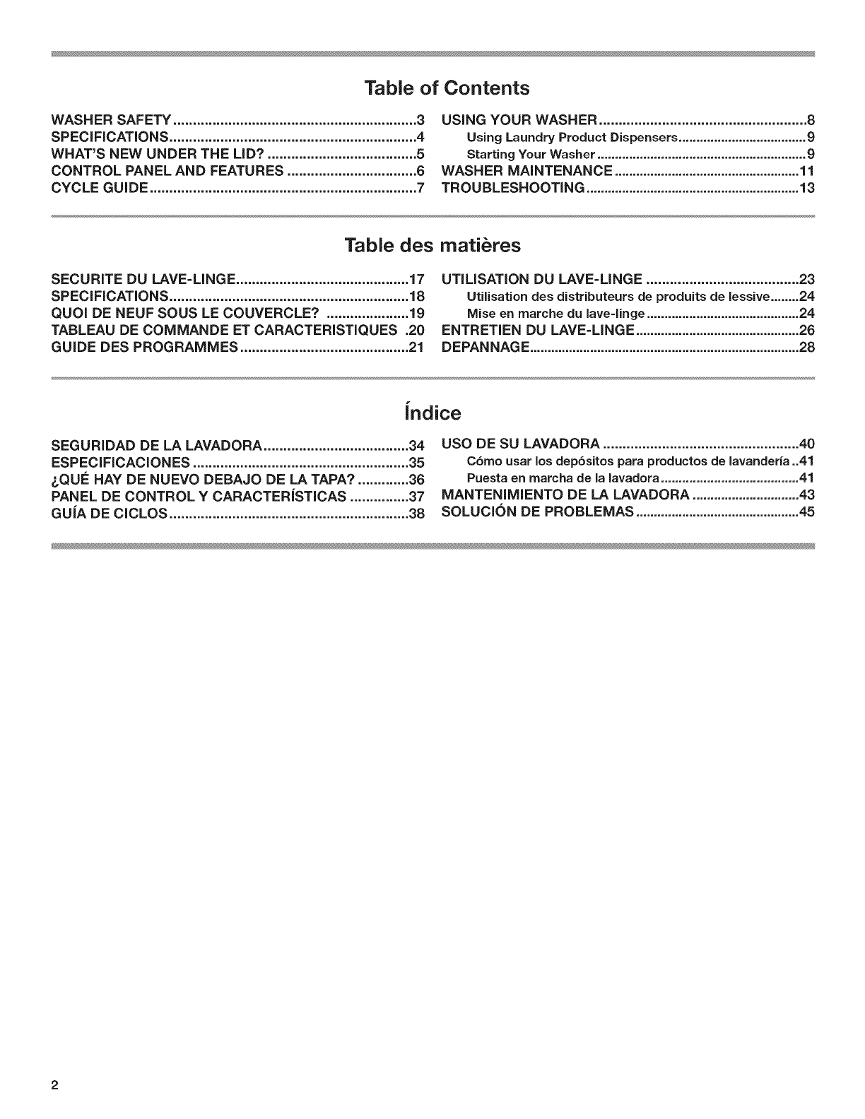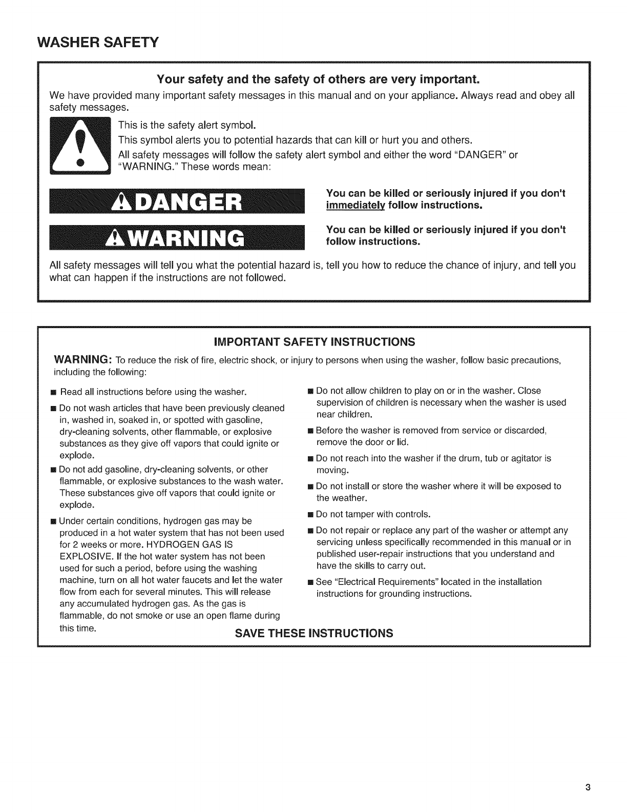 WASHER SAFETY .............................................................. 3