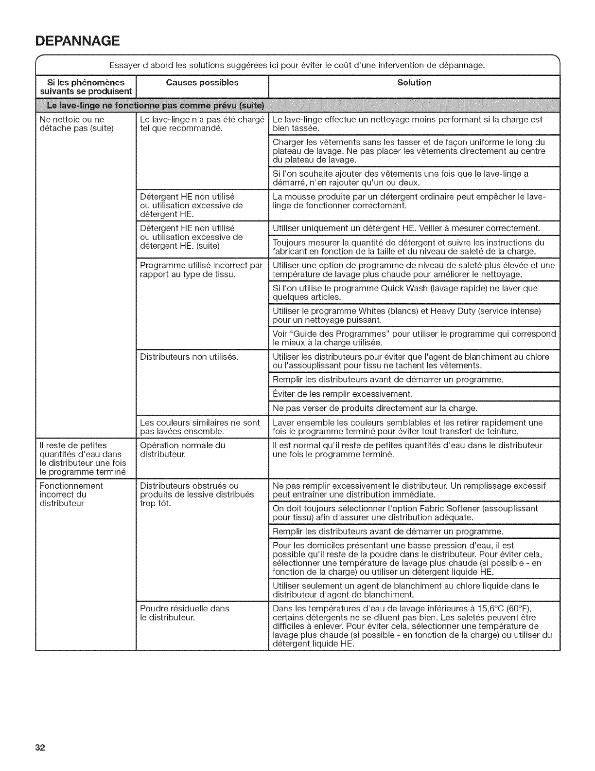 Utilisation des distributeurs de produits de lessive........24