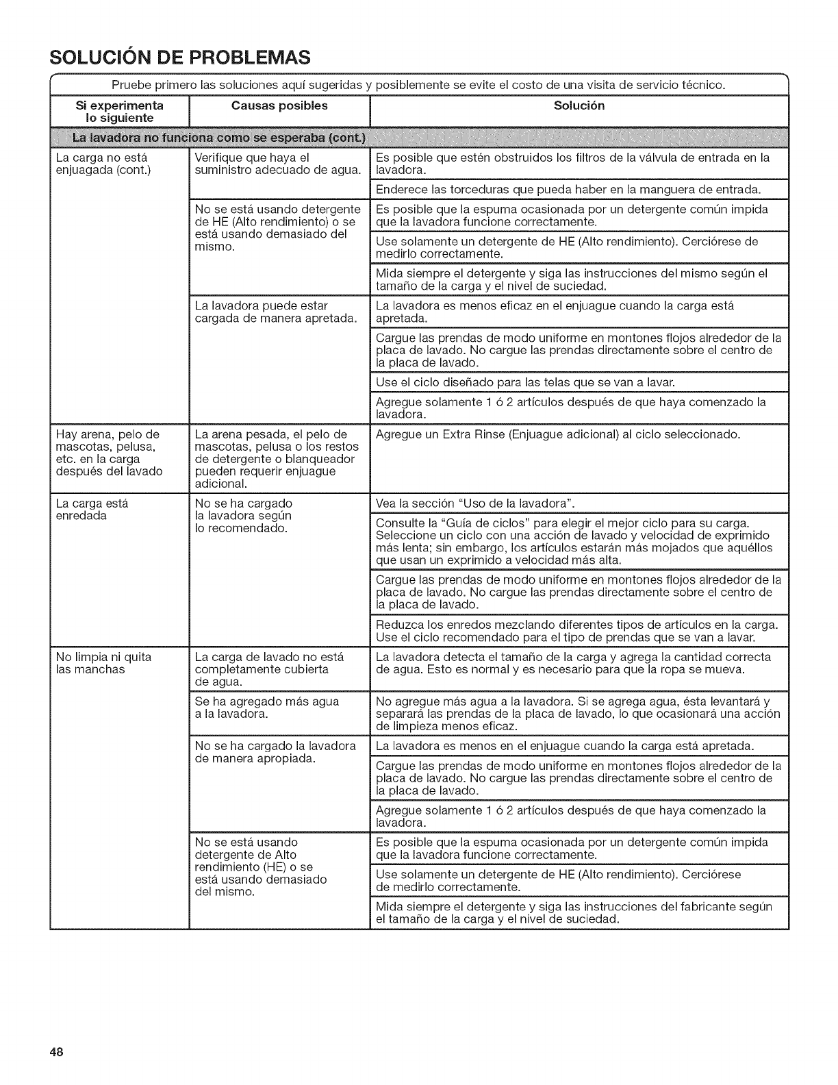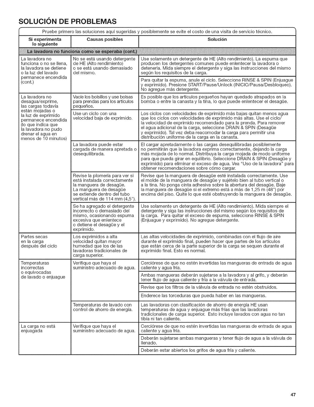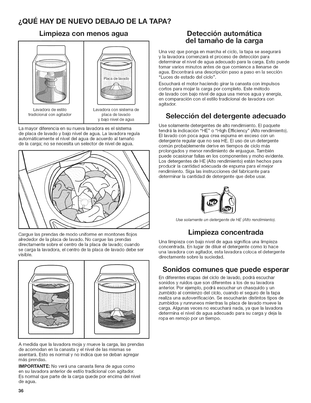 elevada, dependiendo de la carga, o use detergente liquido HE.