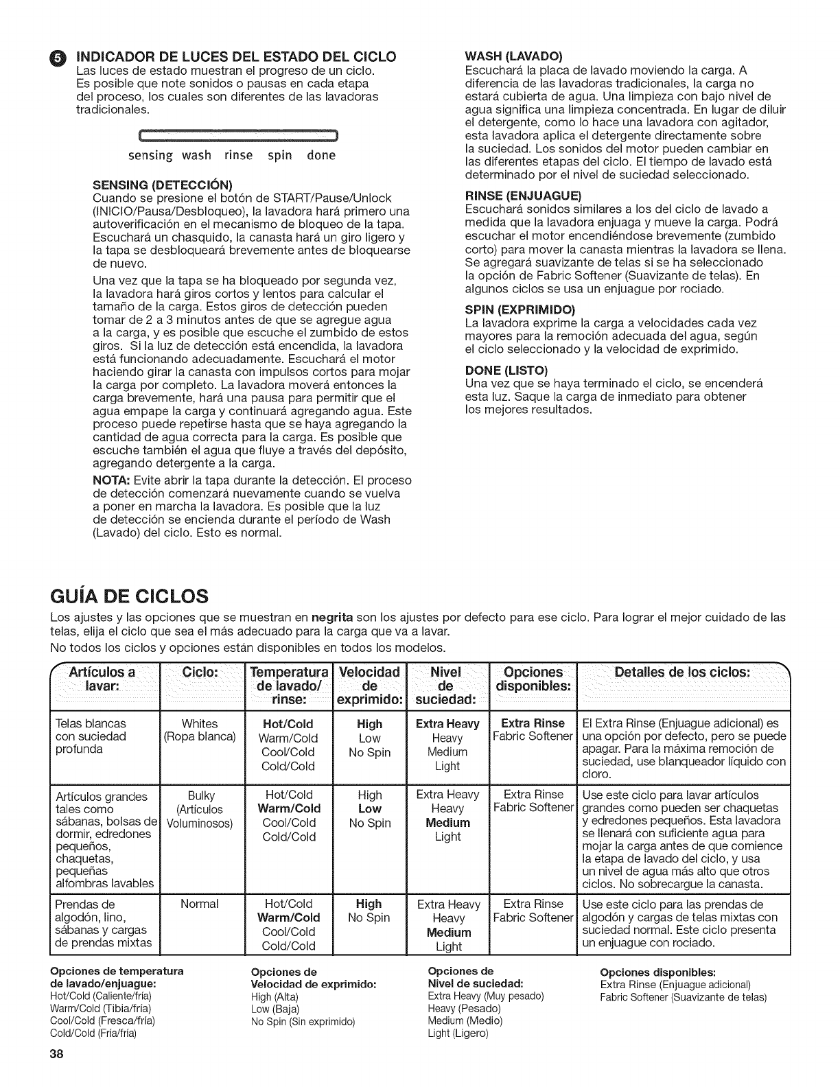 Seleccione siempre la opci6n de Fabric Softener (Suavizante de telas)