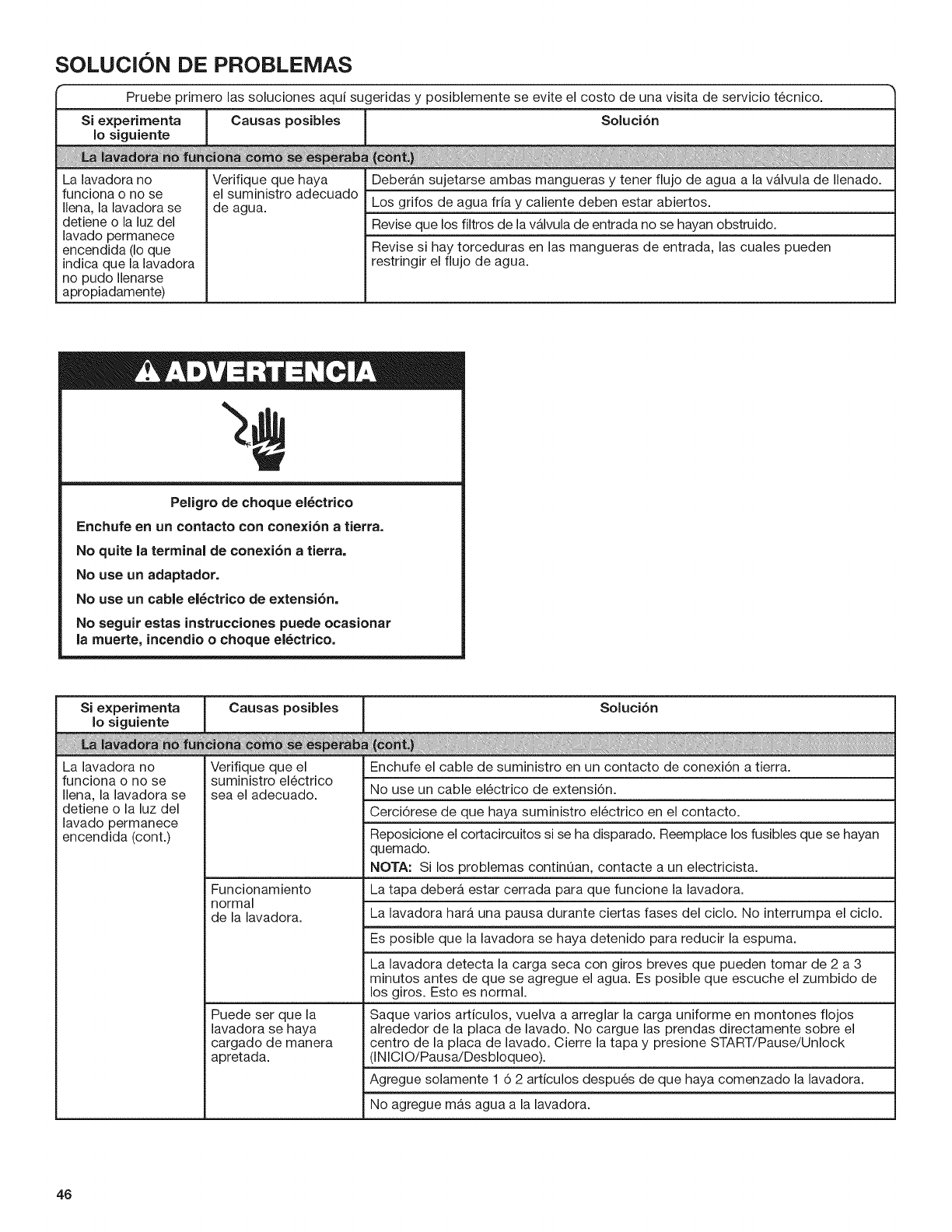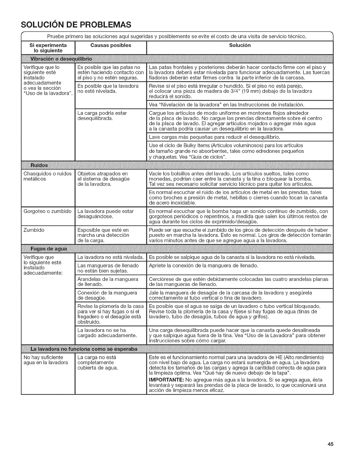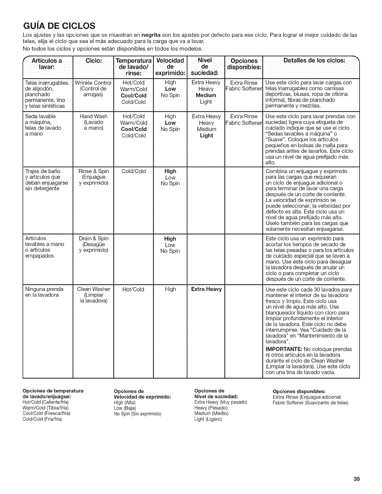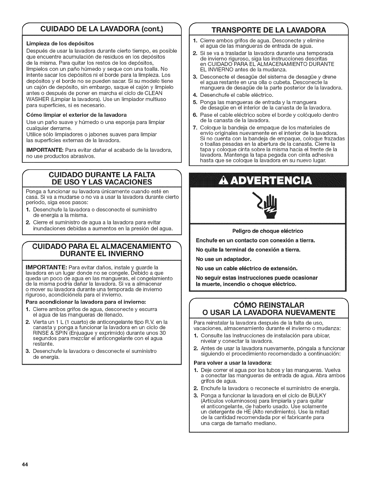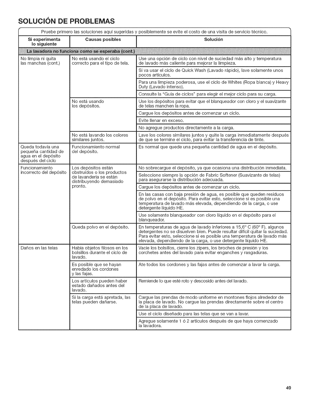 Vea la secci6n "Cuidado de le lavadora".