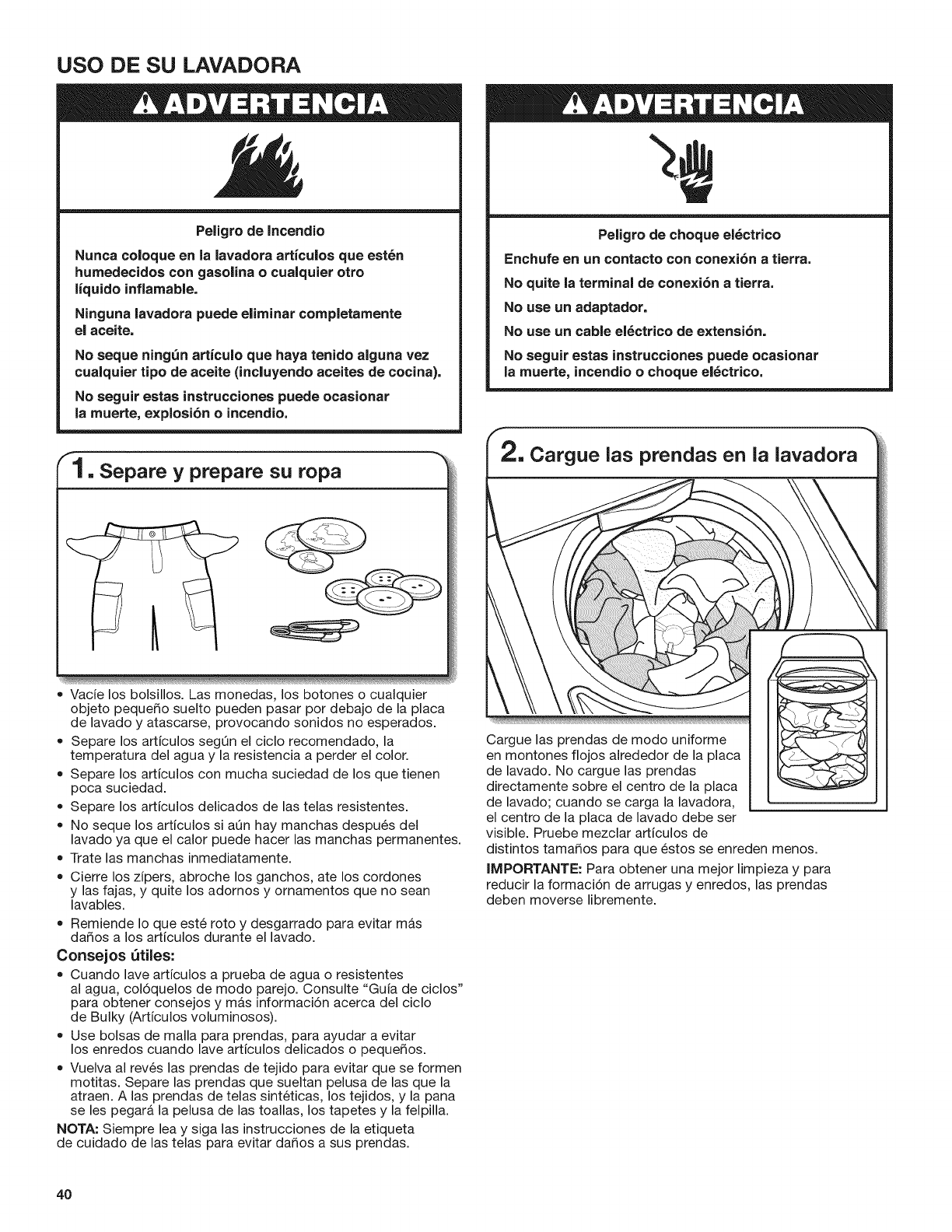 USO DE SU LAVADORA .................................................. 40
