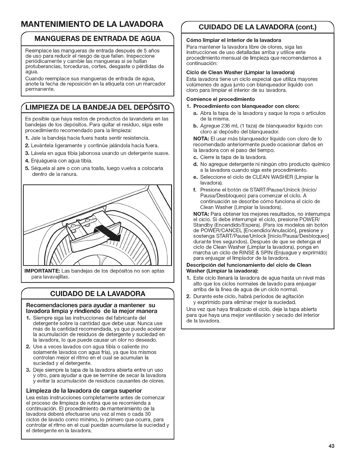 MANTENIMIENTO DE LA LAVADORA ..............................43