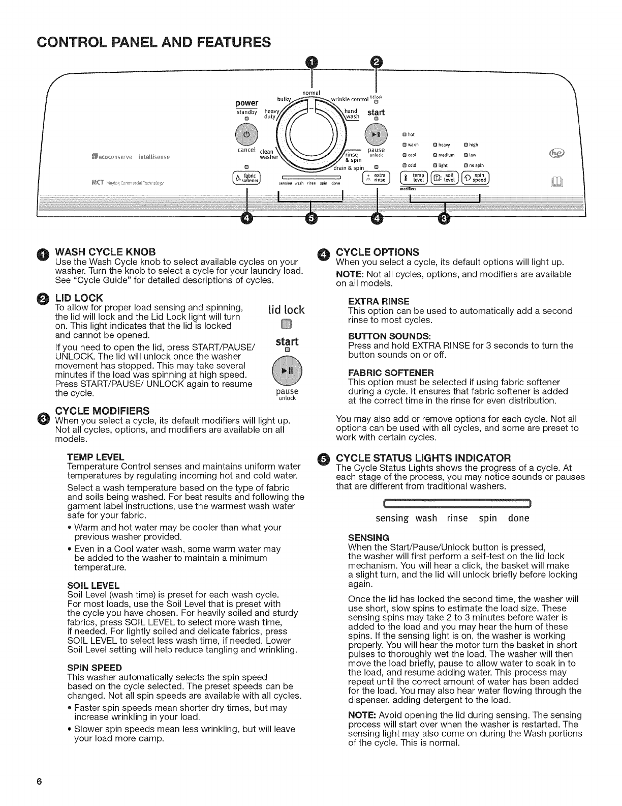 CONTROL PANEL AND FEATURES ................................. 6