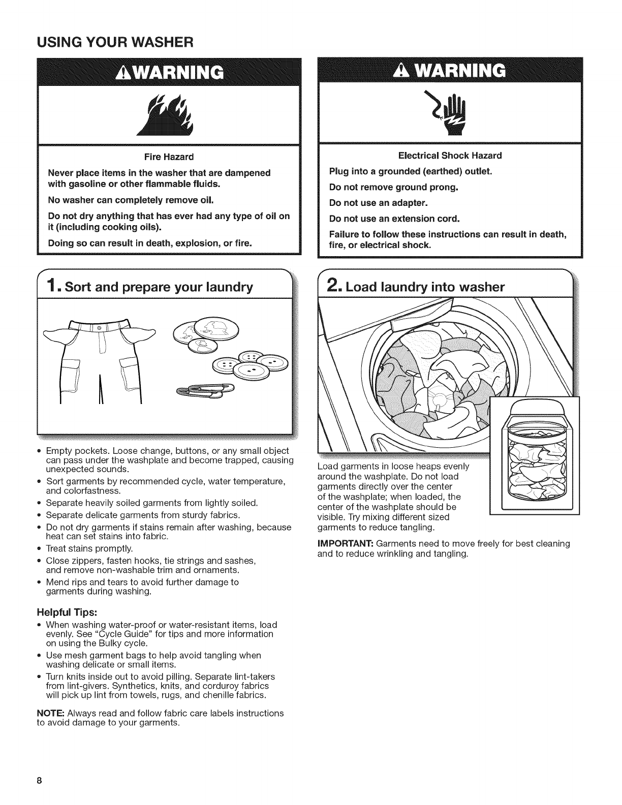 USING YOUR WASHER ..................................................... 8