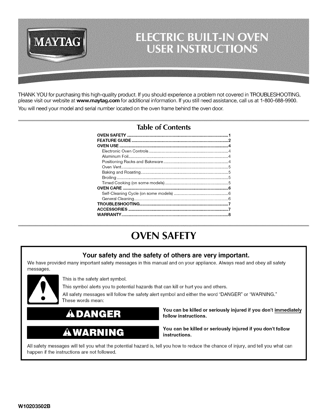 MAYTAG Built In Oven, Electric Manual L0910090 MAYTAG Built In Oven, Electric Owner's Manual, MAYTAG Built In Oven, Electric installation guides