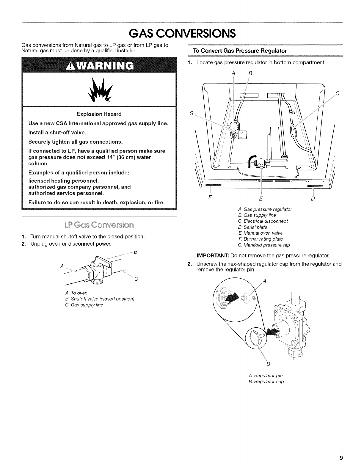IMPORTANT: Do not remove the gas pressure regulator.