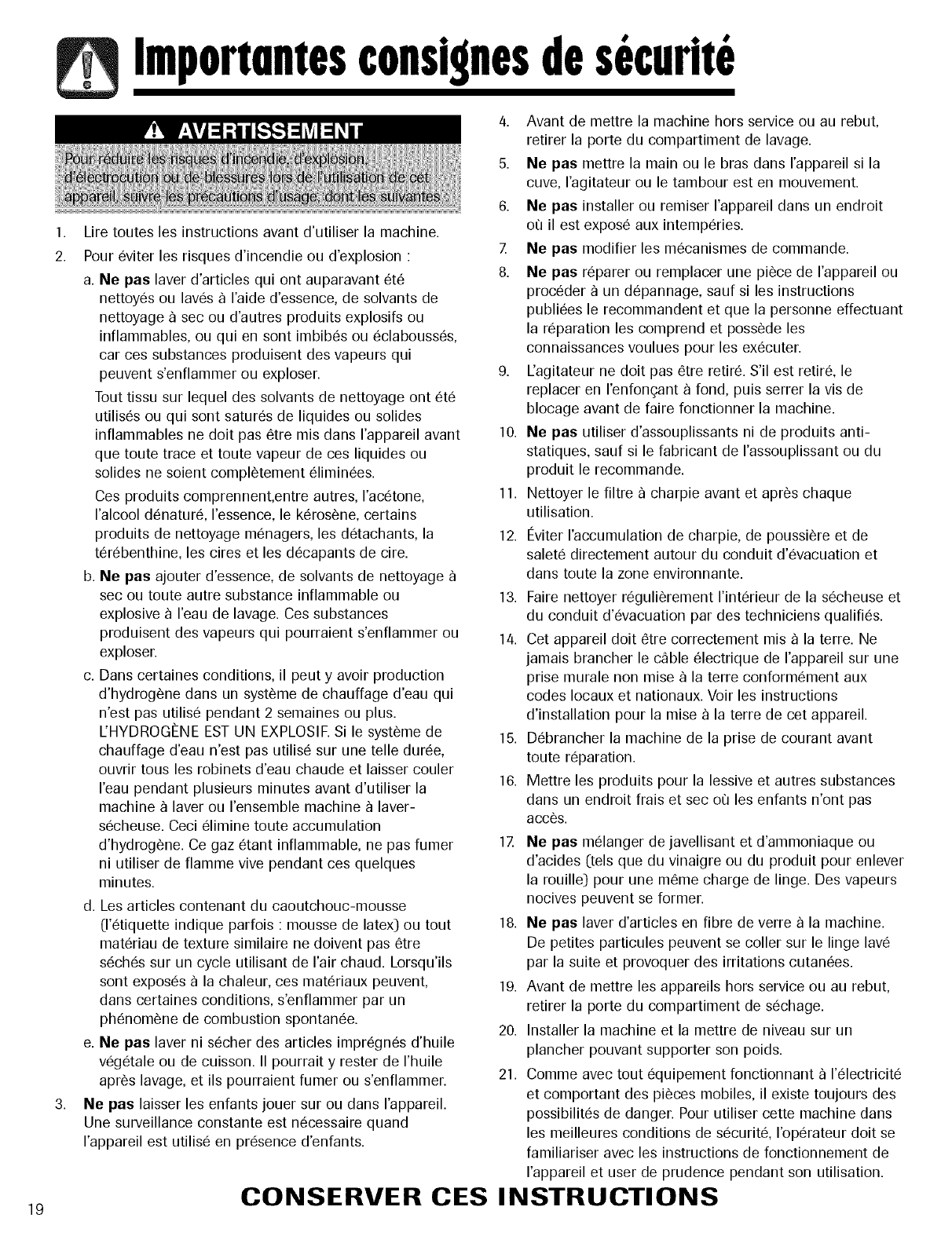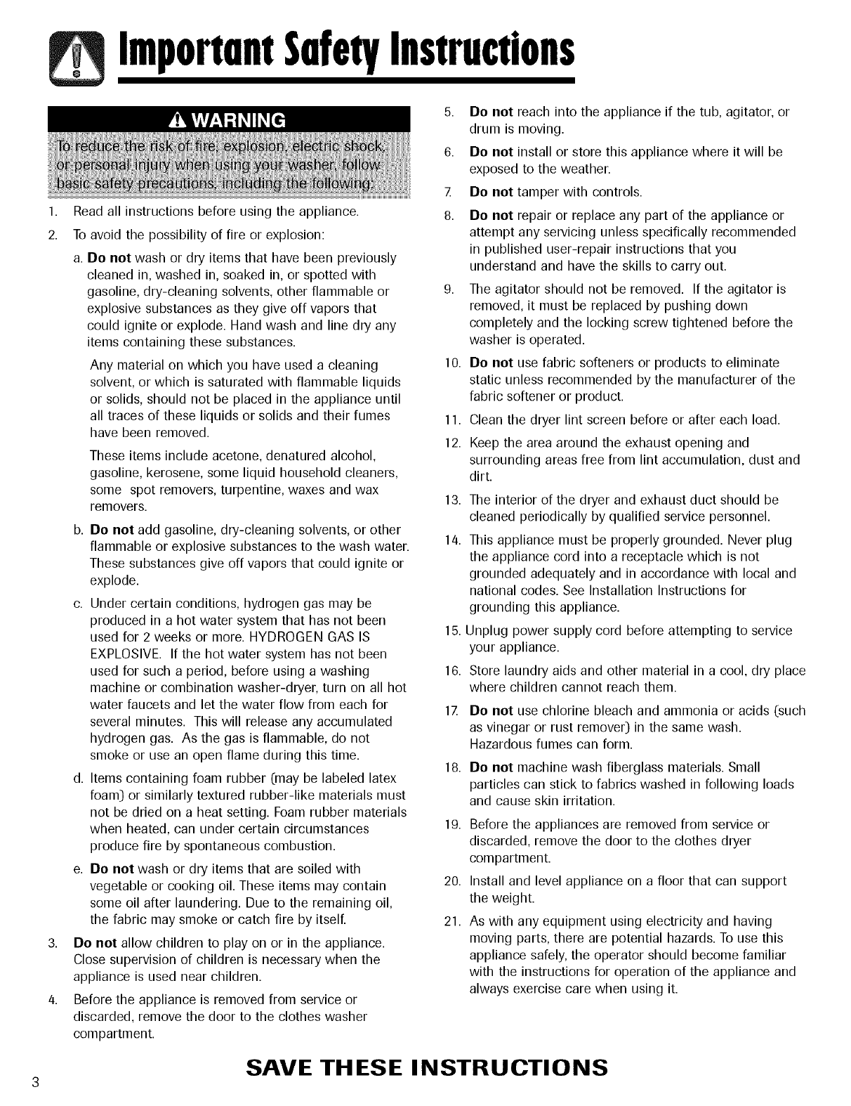 Warning and Important Safety Instructions appearing in