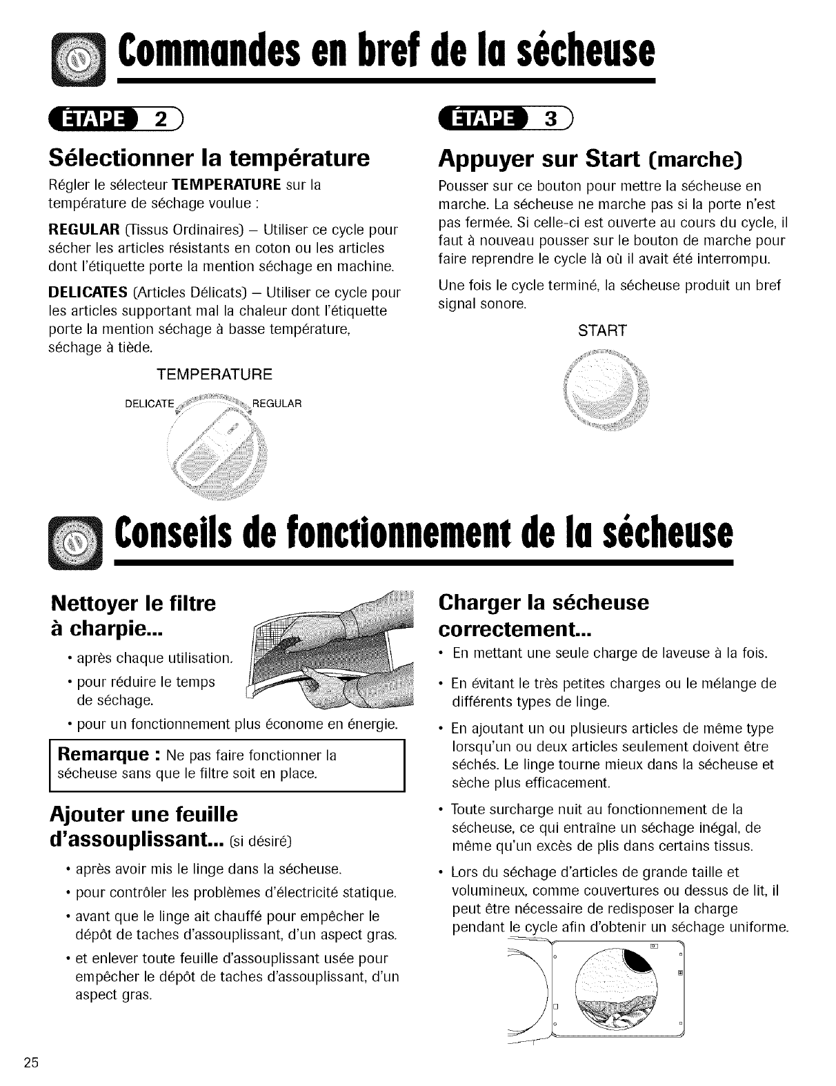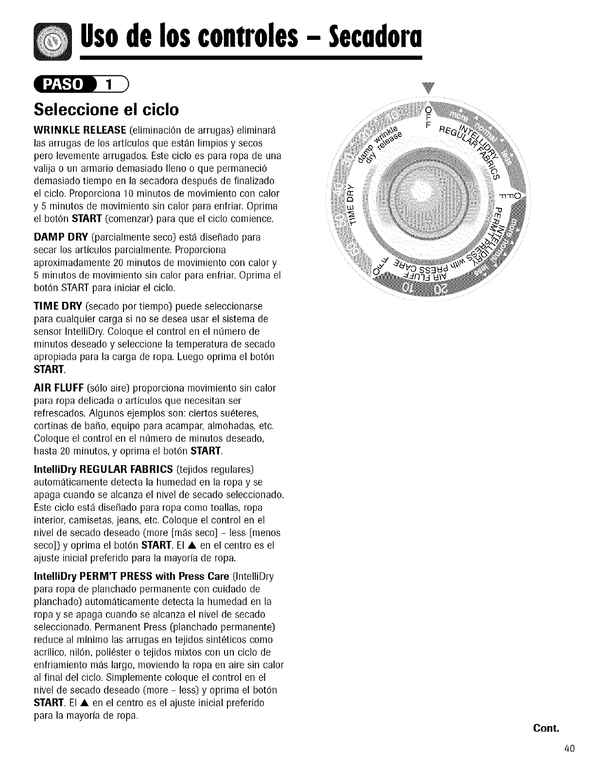vez que la ropa empieza a secarse, la perilla de control comienza a avanzar. AI principio del ciclo