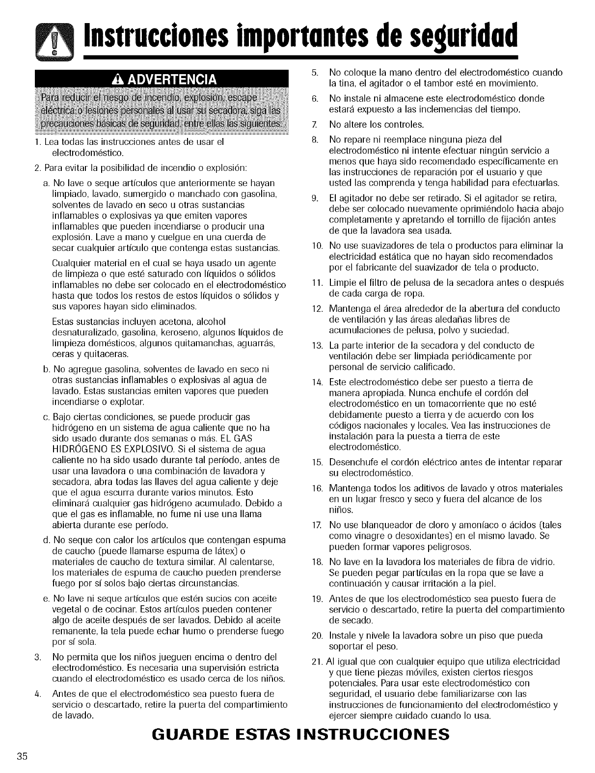 encuentren presentes en el aire, ventile completamente la habitaciOn antes de usar la secadora.
