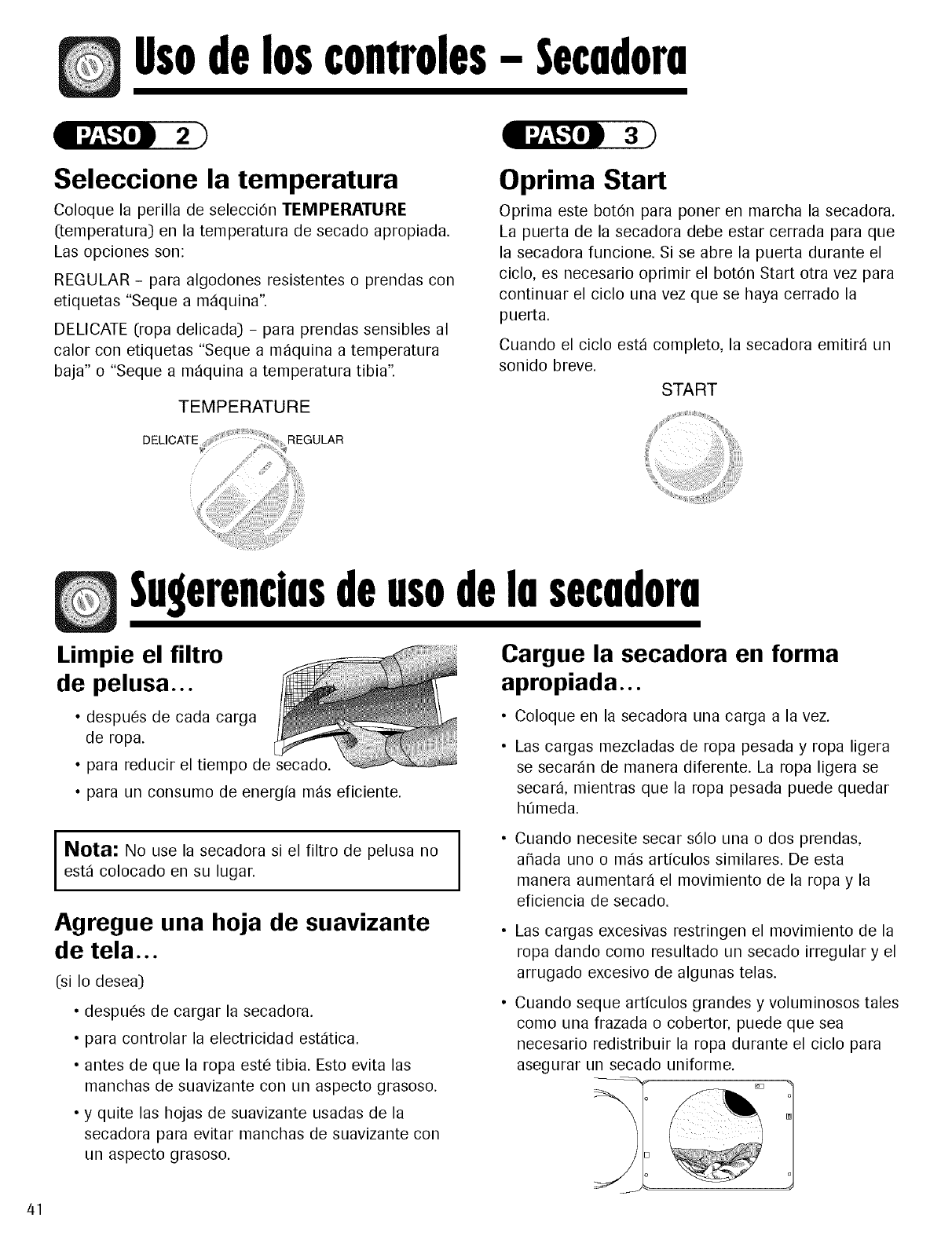 • Si se seca un artfculo pesado con una carga de ropa liviana, tal como una toalla con s_banas, es