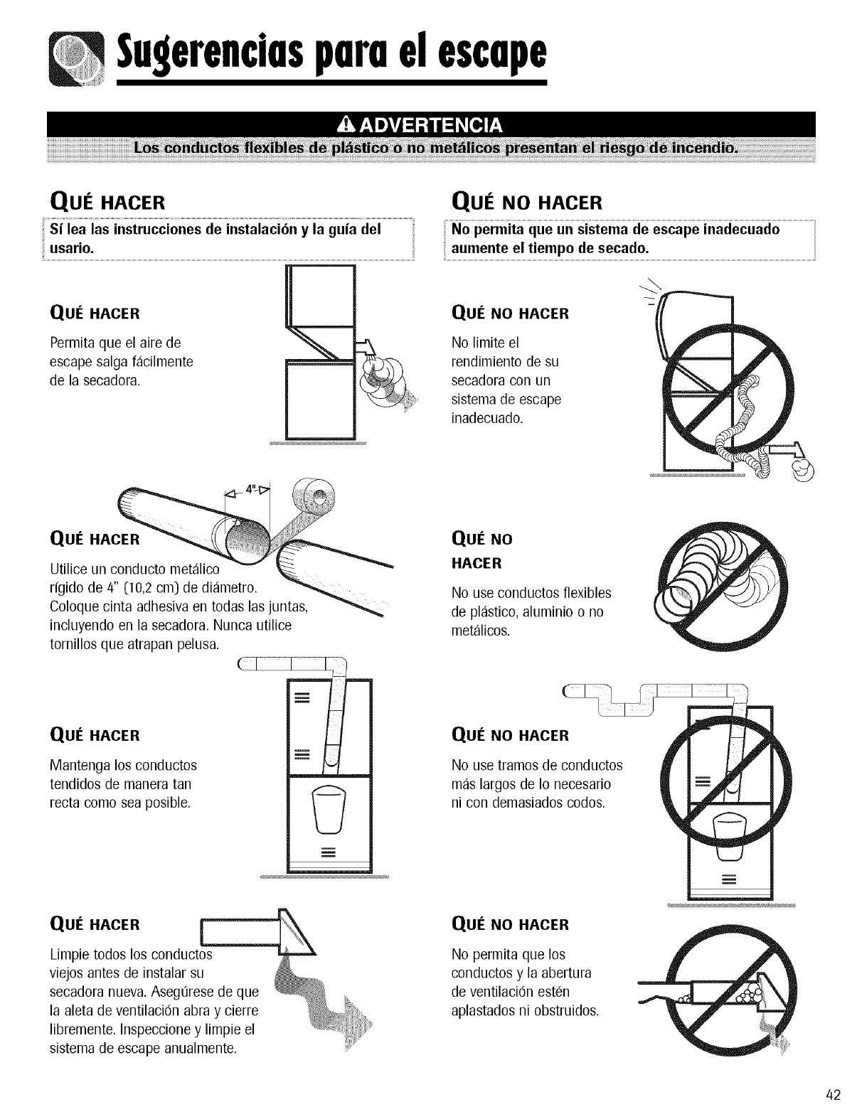 free of obstructions and properly exhausted dryers will