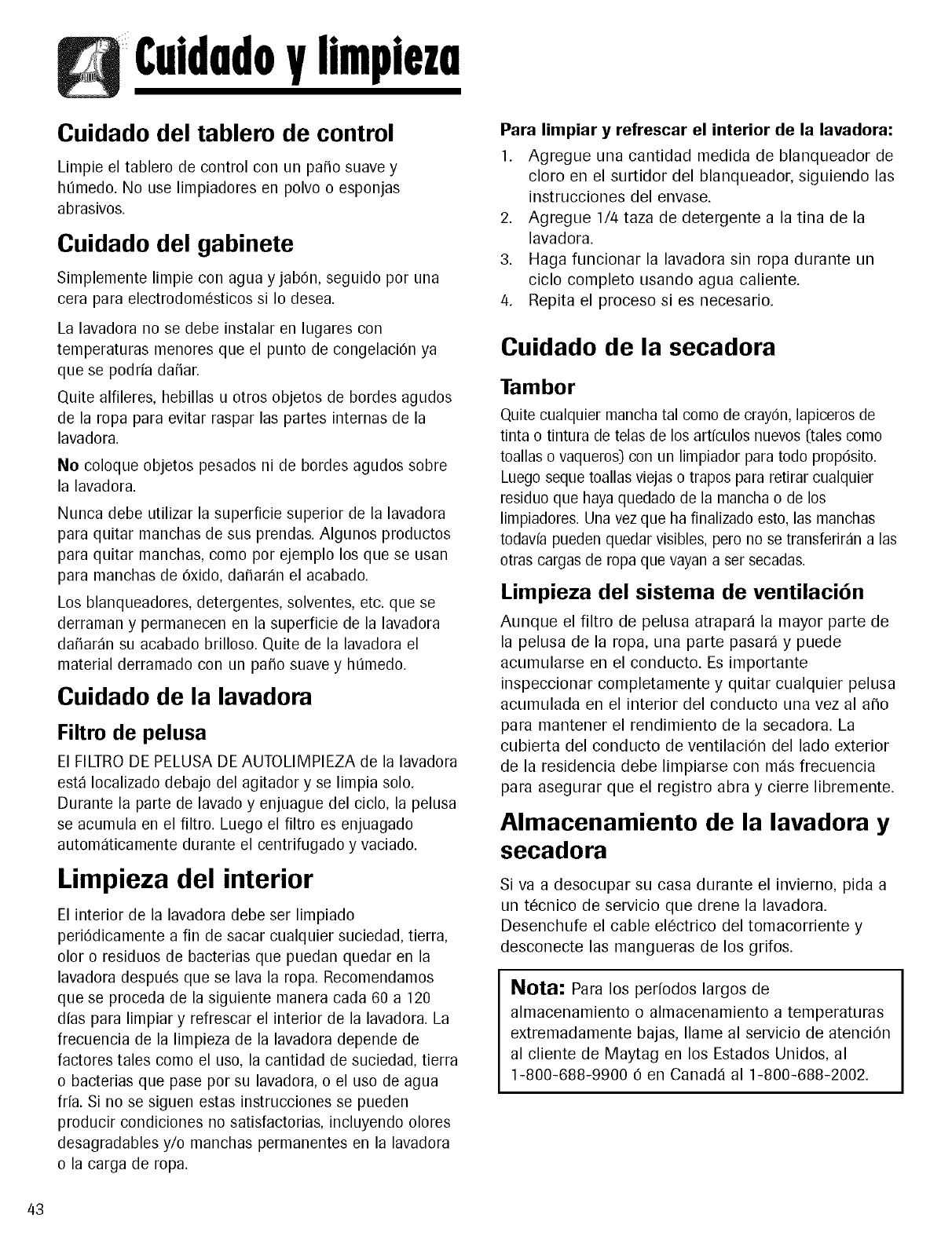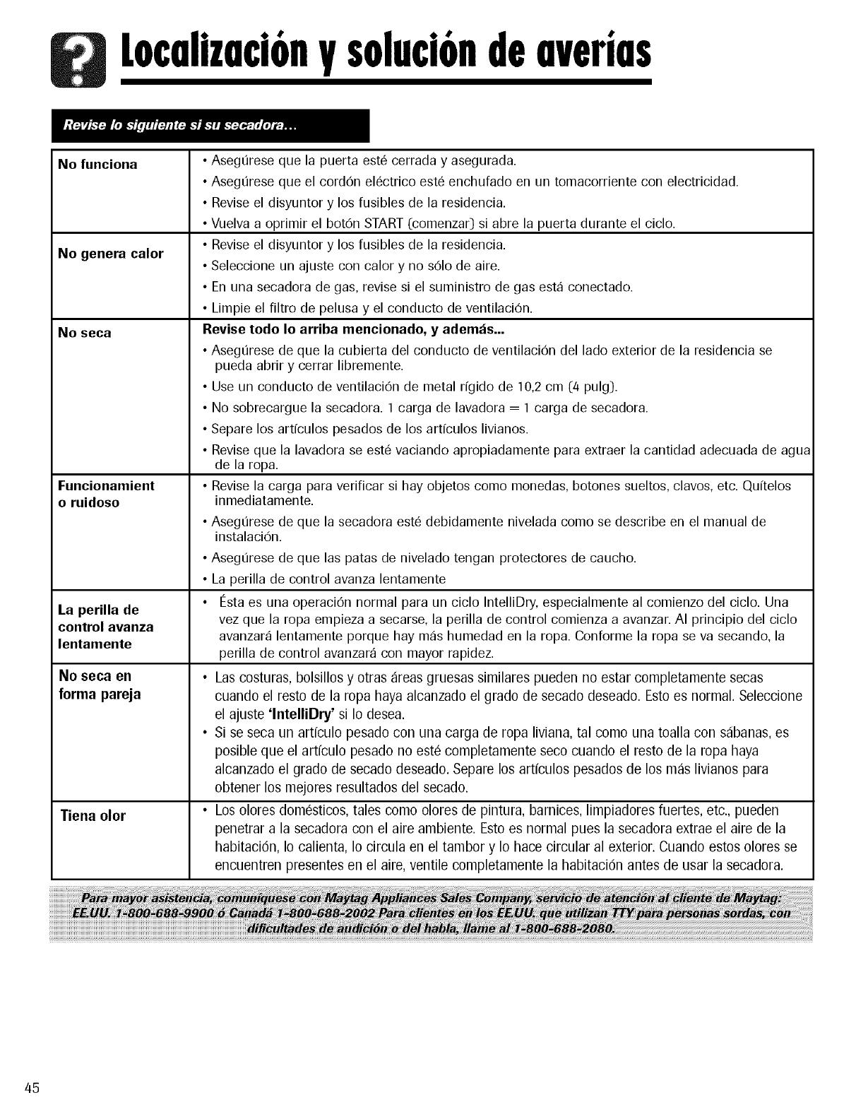 puede Ilamar a Maytag Services, LLC,AtenciOn al cliente, al 1-800-688-9900 en