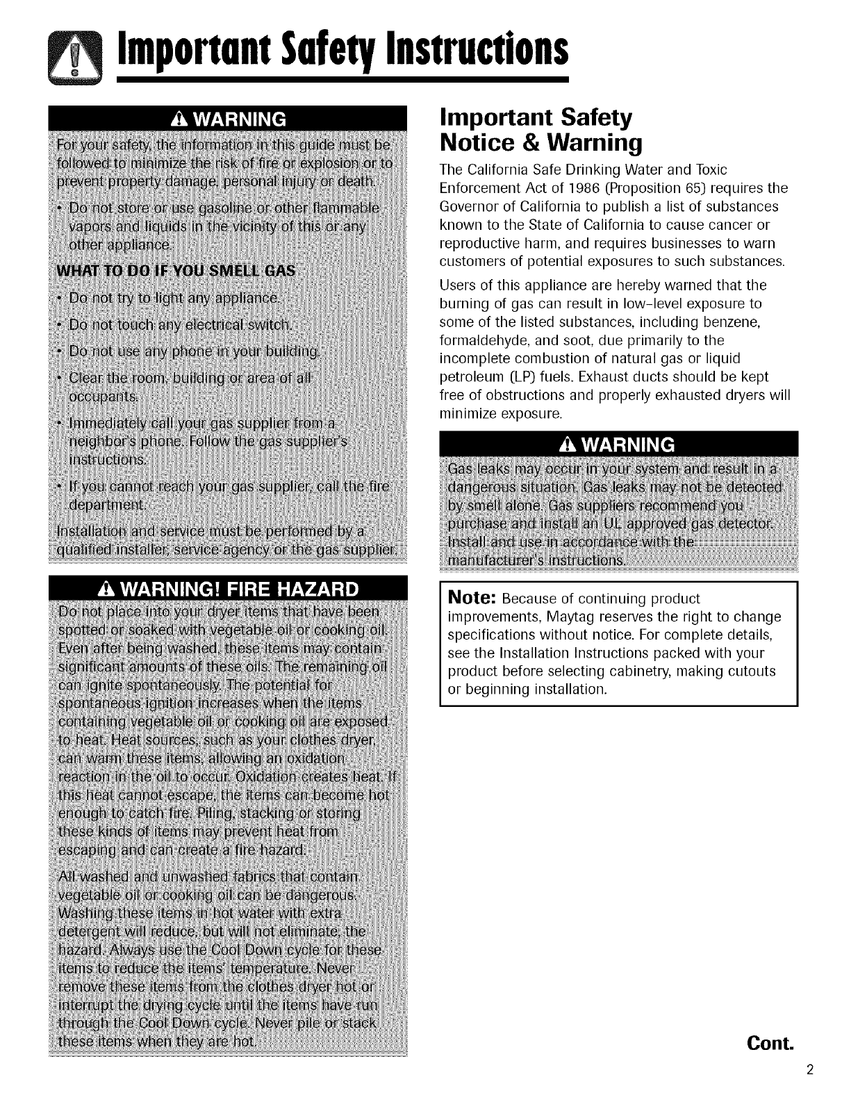 improvements, Maytag reserves the right to change