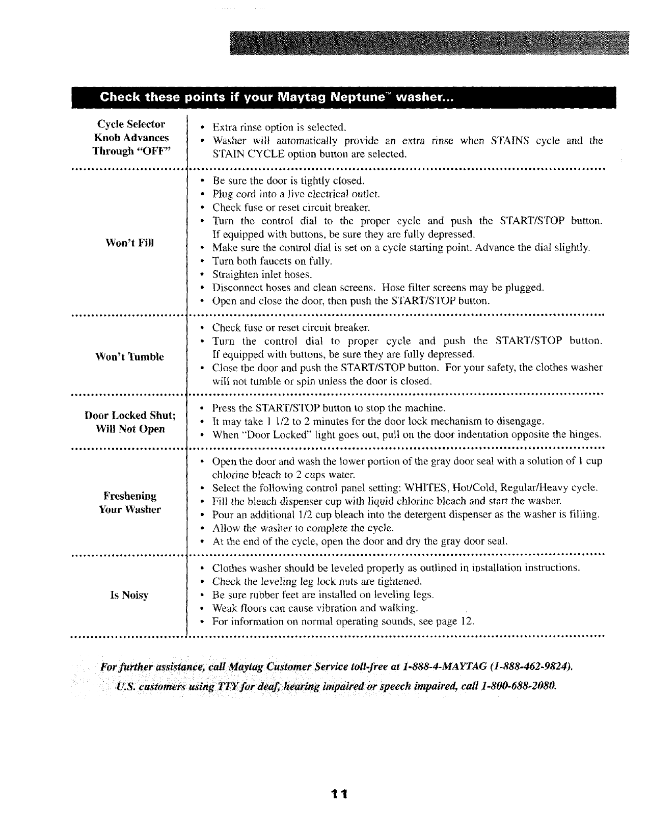 Appliances Sales Company, Maytag Customer Assistance at the number listed below. Should you not receive satisfactory warranty service,