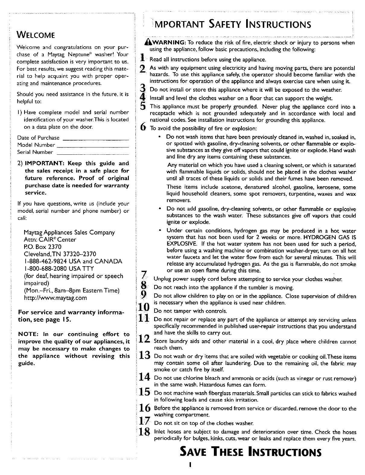 MAYTAG Residential Washers Manual L0302242 MAYTAG Residential Washers Owner's Manual, MAYTAG Residential Washers installation guides